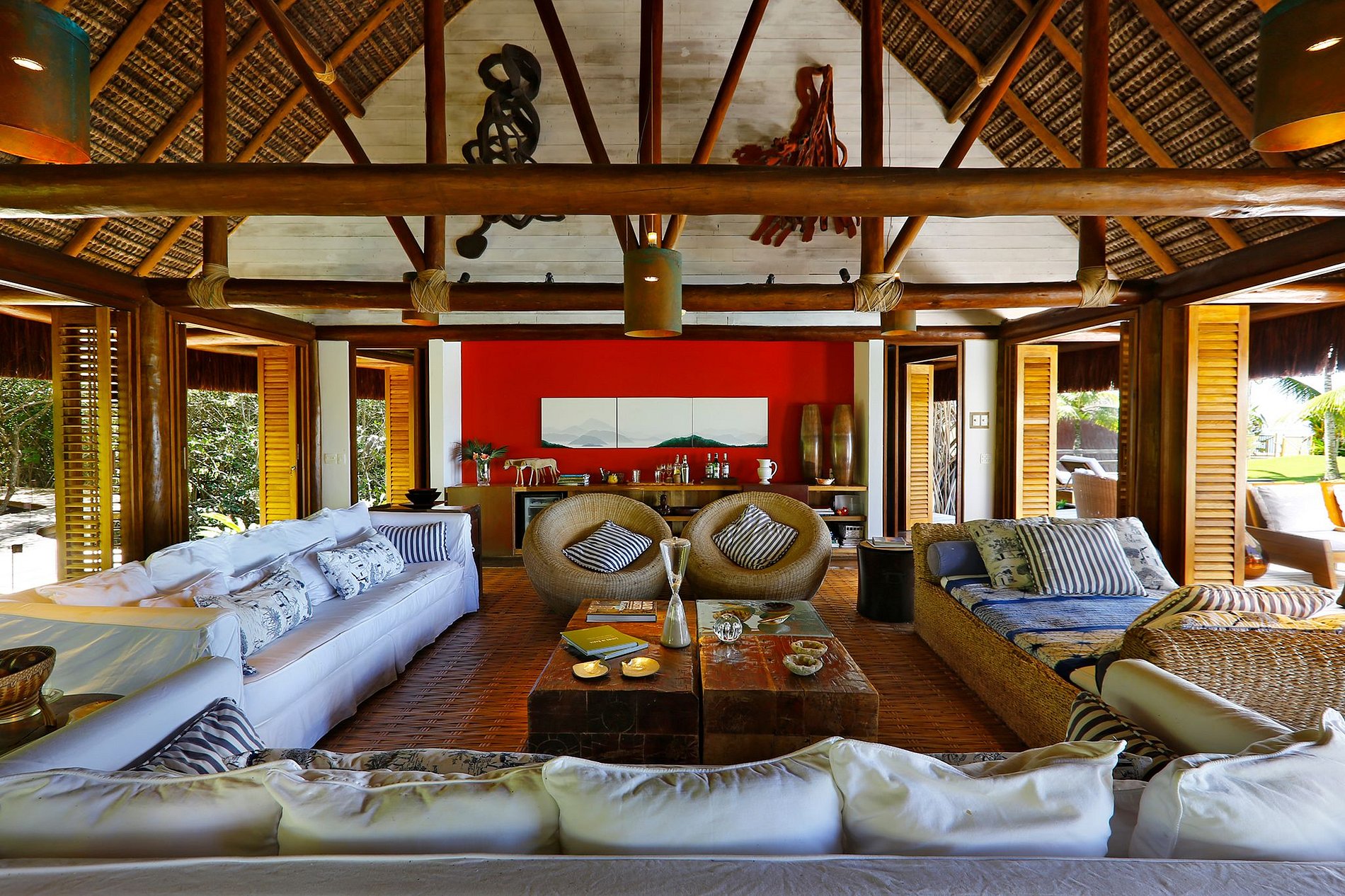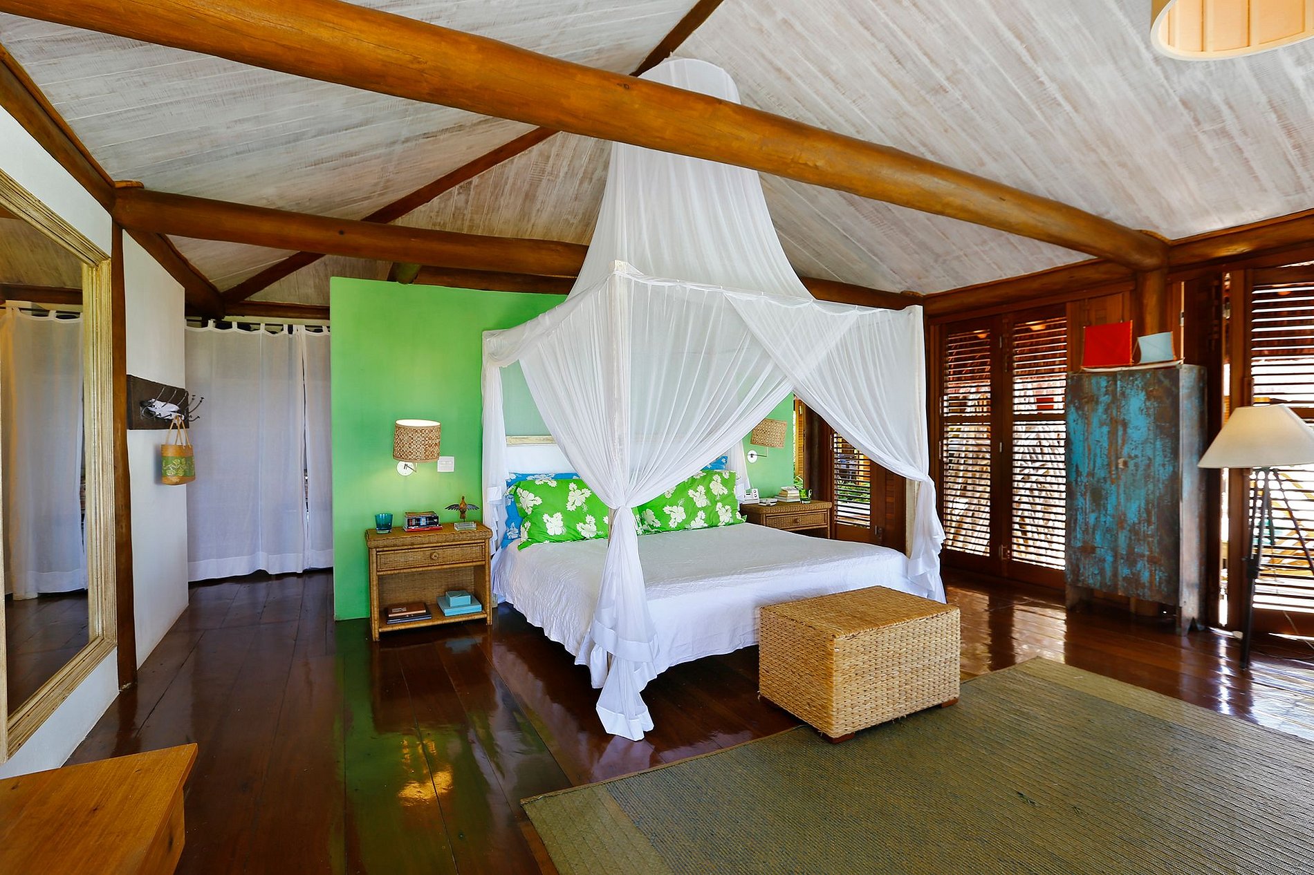 Os cômodos são grandes, arejados e possuem um charme rústico e sofisticado, típicos de uma bela casa de praia. São 4 suítes e 2 quartos, uma das suítes com vista para o mar e as outras com vista para um lindo jardim que contorna a casa.