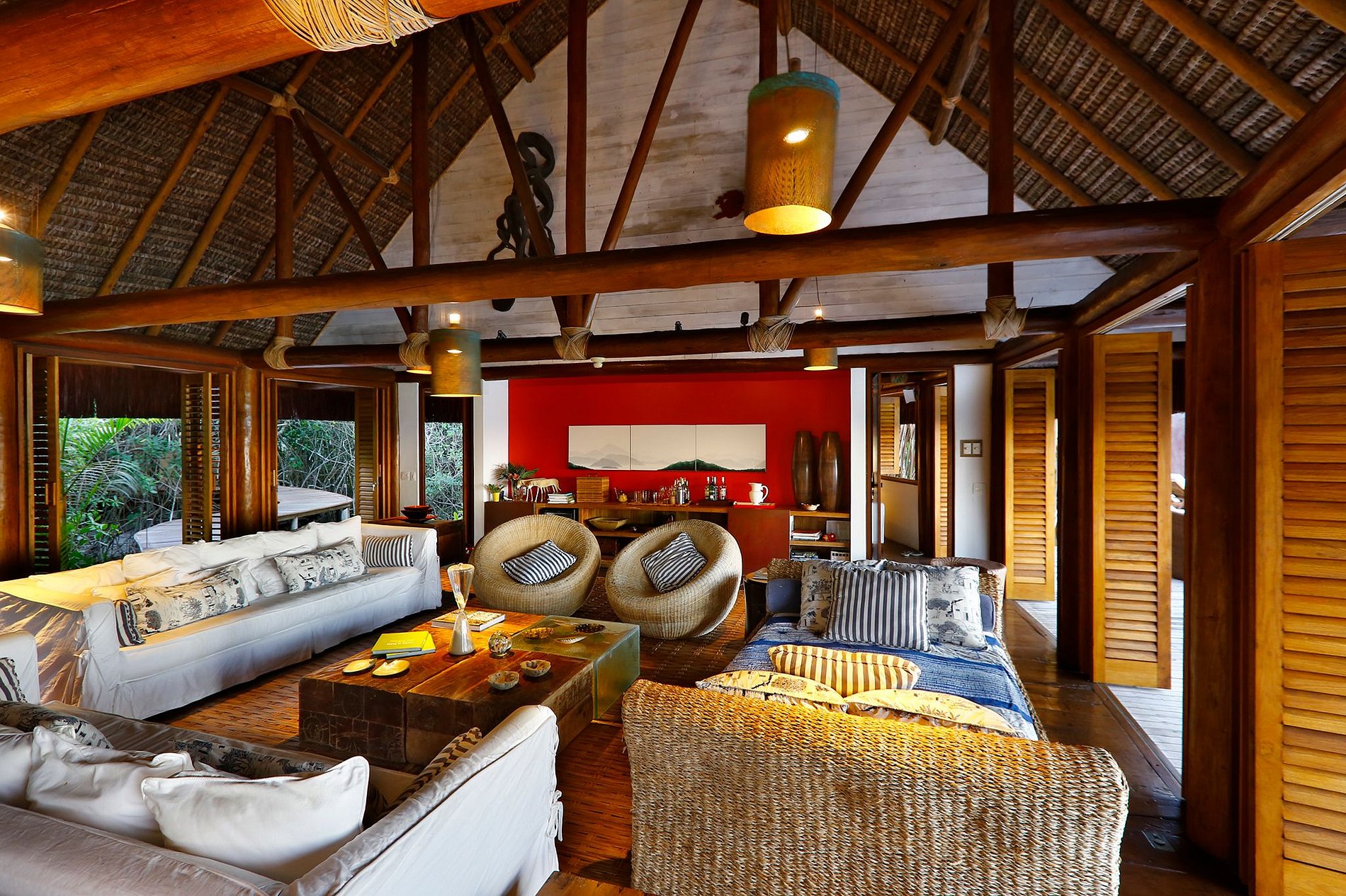 Essa incrível casa, rodeada pelos mangues, tem pé na areia na tranquila Praia do Rio da Barra.