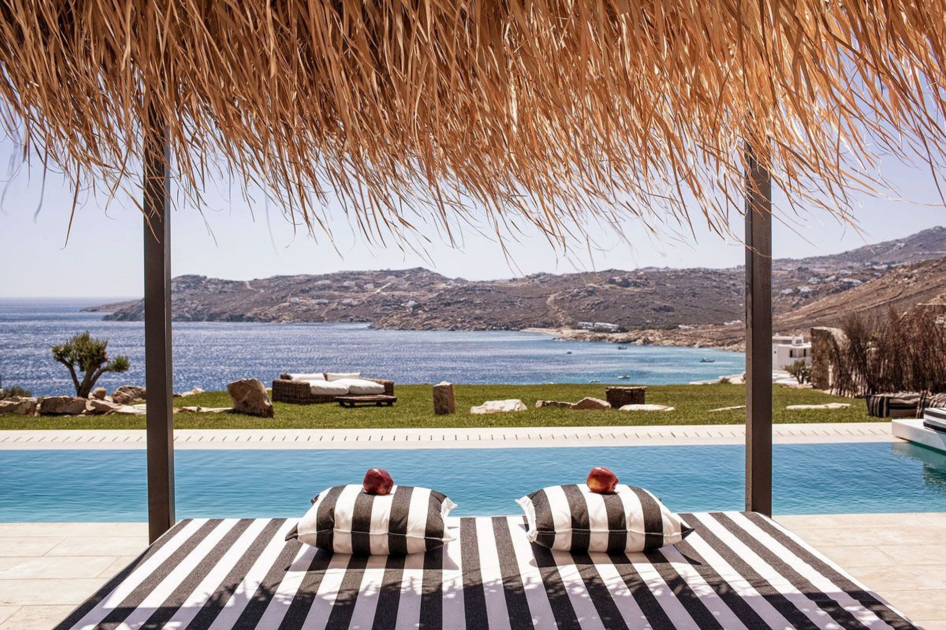 A Villa Paraíso em Mykonos possui 6 quartos e total conforto.