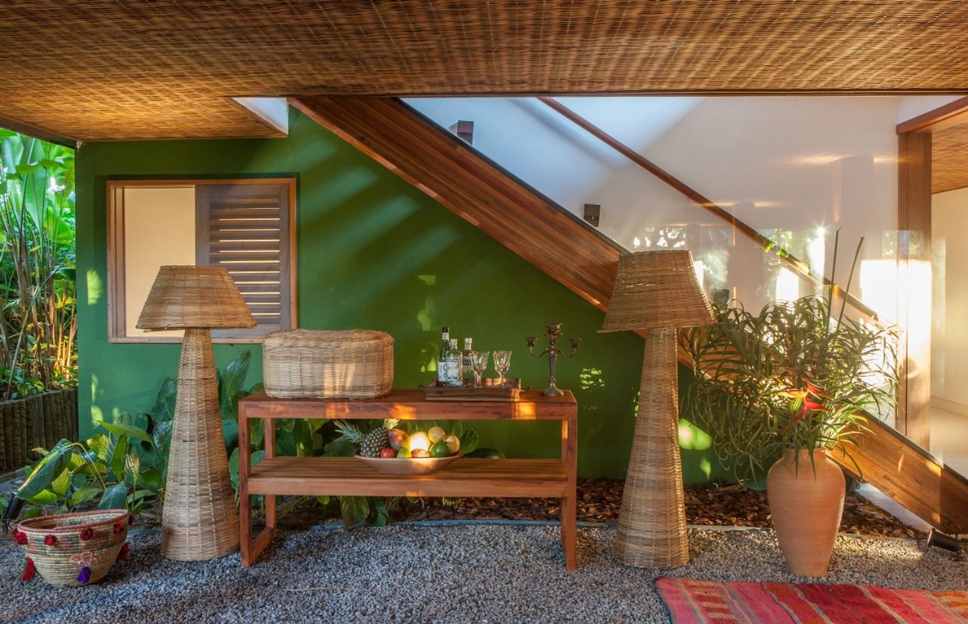 Integrada com a natureza e com 2 estruturas distintas, sendo a área social com living, sala de jantar e cozinha.