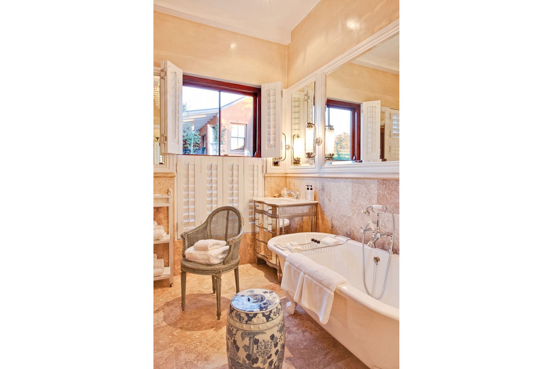 O La Residence está rodeado por vinhas e pomares de ameixa, com um cenário de montanha espectacular, vistas deslumbrantes sobre a paisagem ondulante e uma atmosfera de completa tranquilidade. Um novo marco para o alojamento luxuoso em Franschhoek. Entre no Grande Salão e seja transportado para um mundo de beleza, opulência e grandeza neste hotel de luxo Franschhoek.