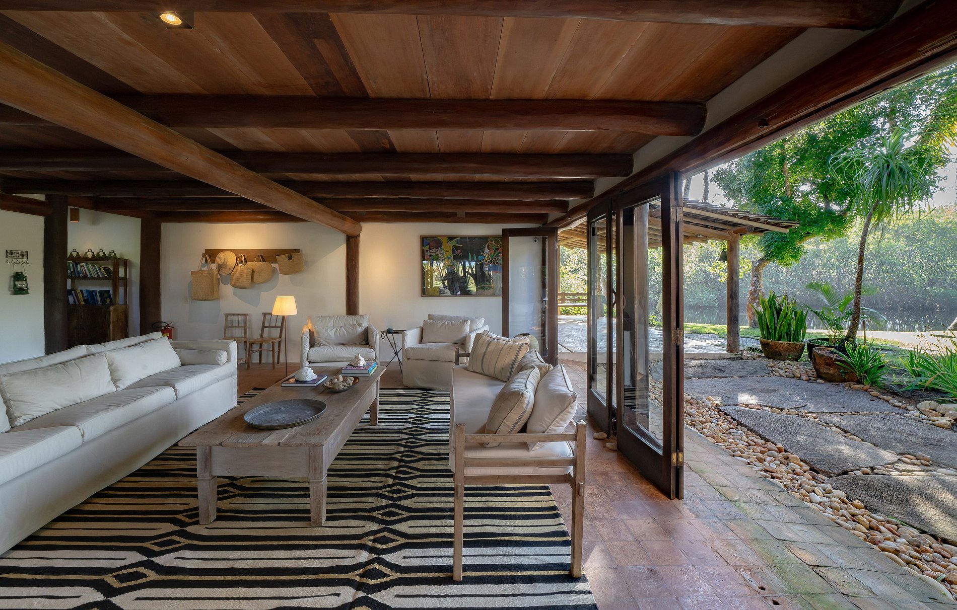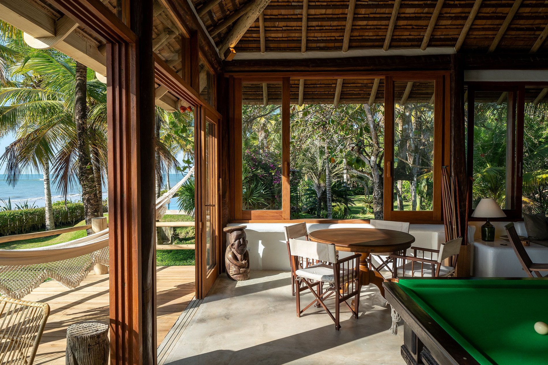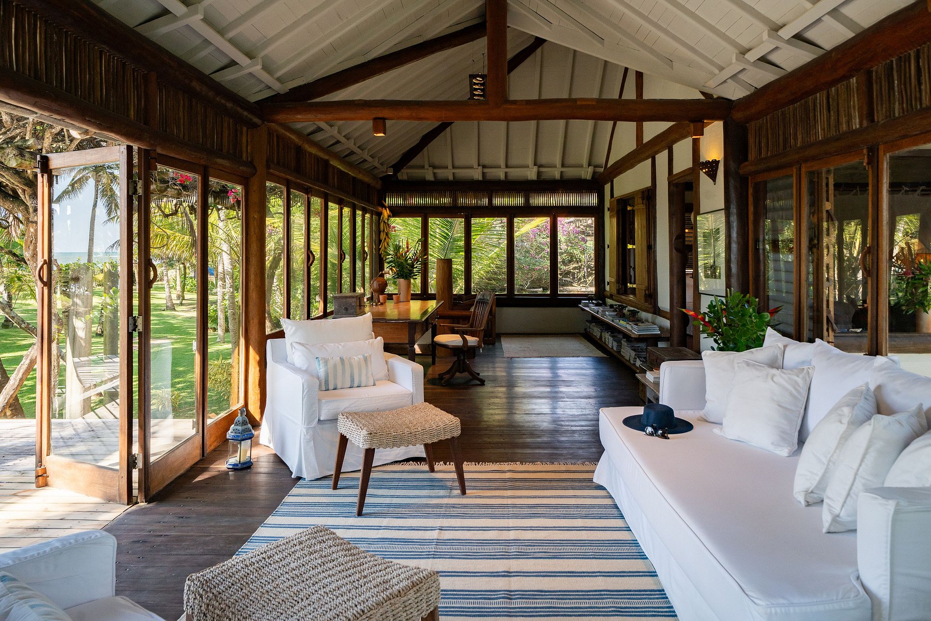 CASA PRINCIPAL com Sala de TV 65” com vista mar, varanda espaçosa, ventilador e AC; Sala de estar; Sala de jantar;Terraço com mesa para até 16 pessoas e Lavabo.
