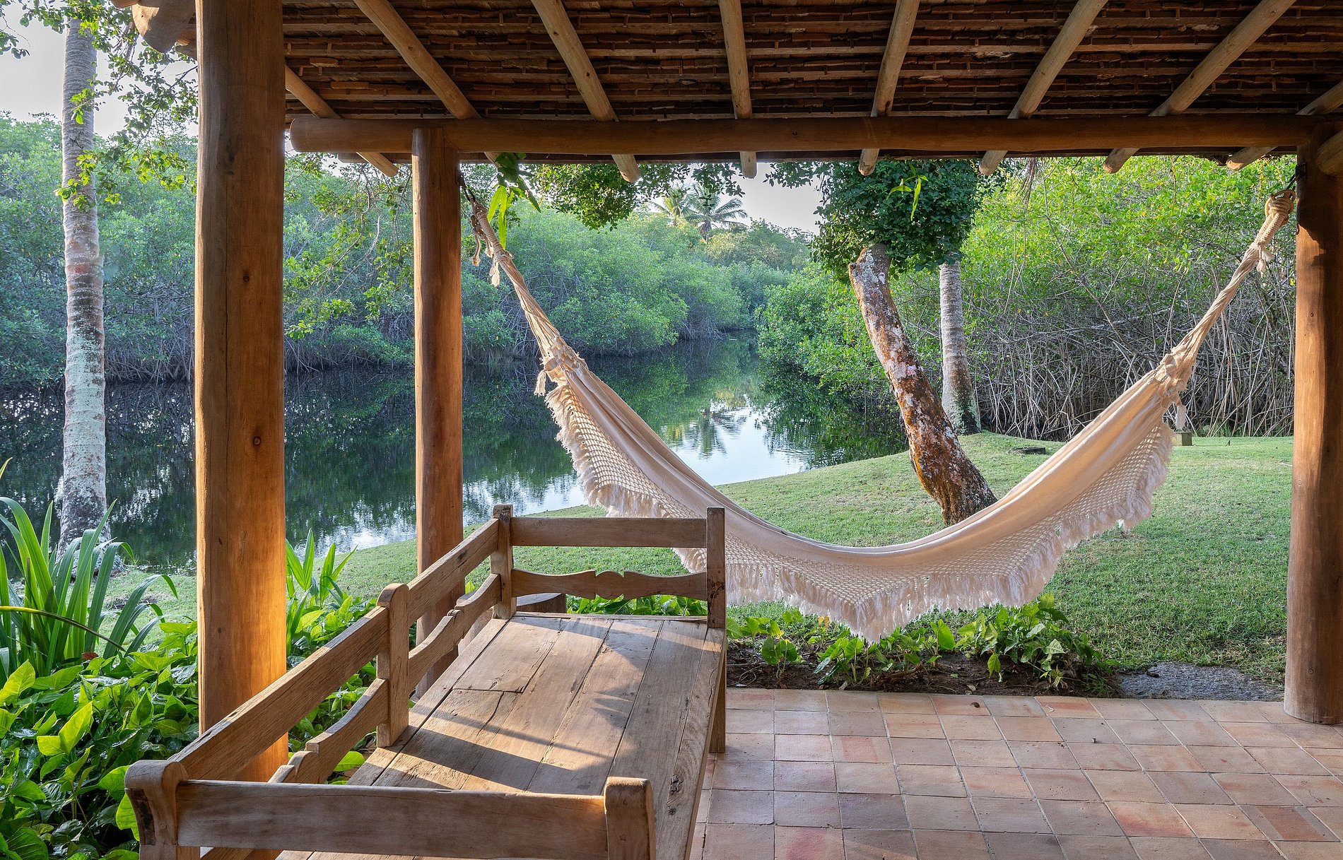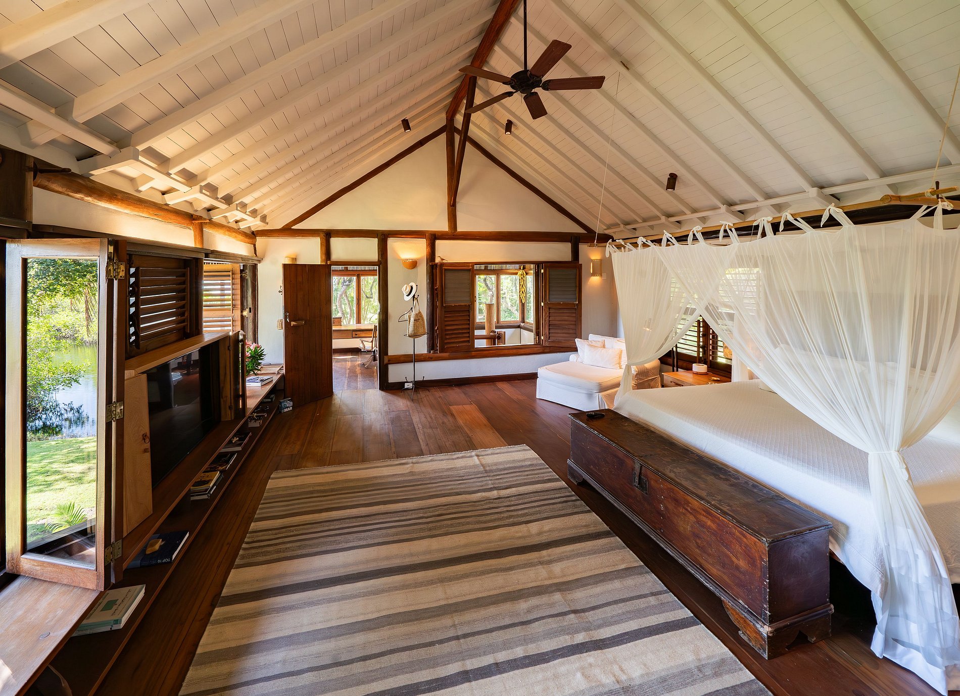 SUÍTE 2 - LAGOA com vista para a lagoa, 2 camas de solteiro ou 1 cama de casal(camas de solteiro juntas com Pillow top), mosquiteiro, banheiro, varanda, secador de cabelo, AC, TV 50”, cofre;