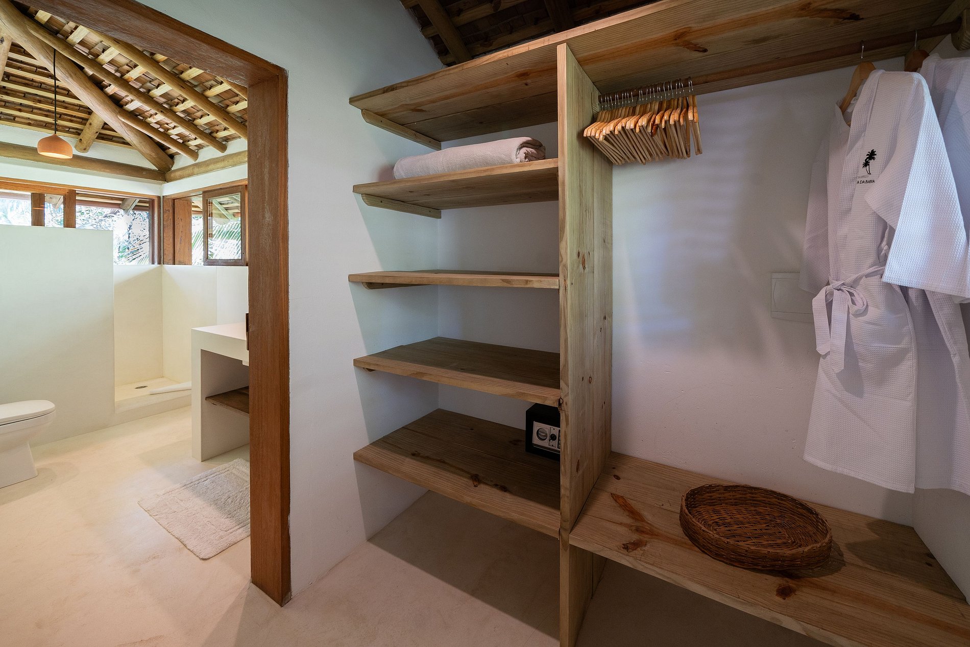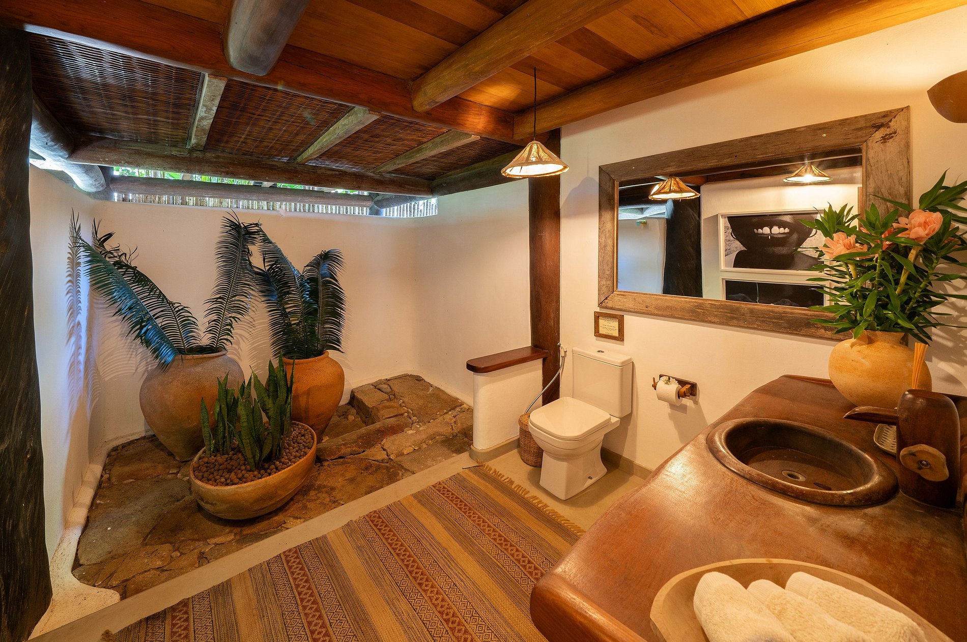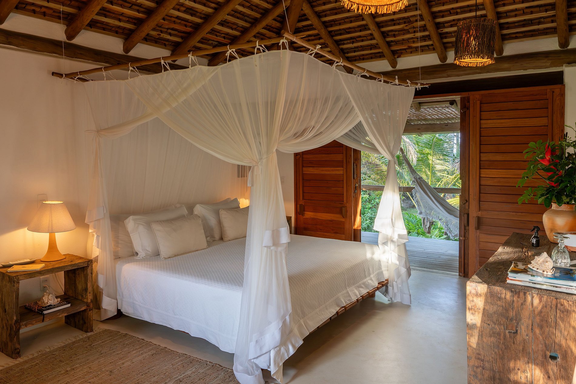 SUÍTE 4 - JARDIM com vista mar, varanda, cama king size, mosquiteiro, closet, banheiro, secador de cabelo, AC, cofre;