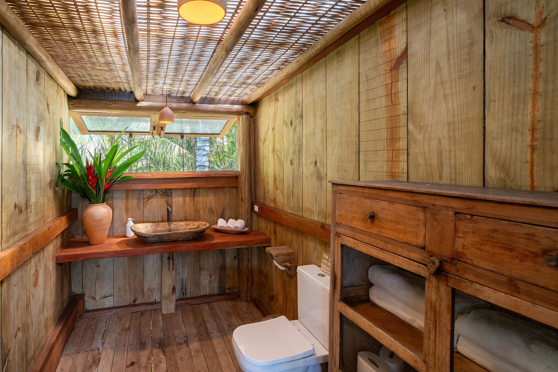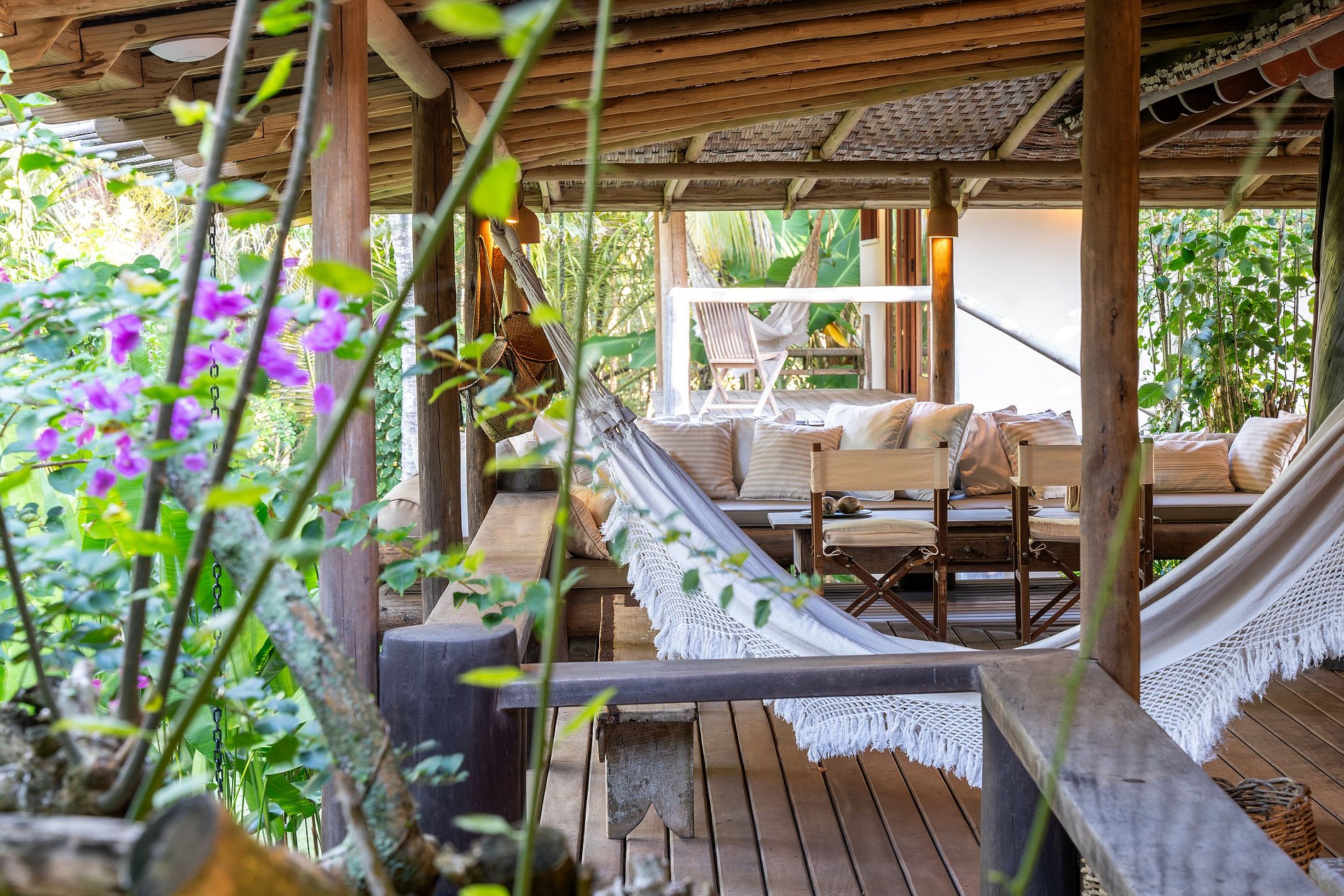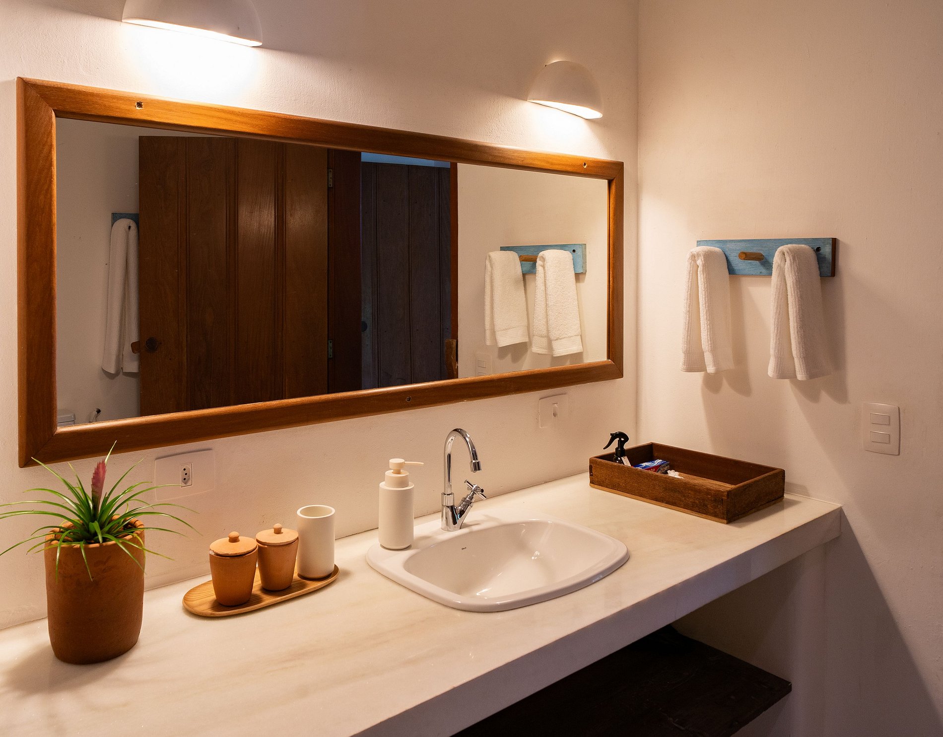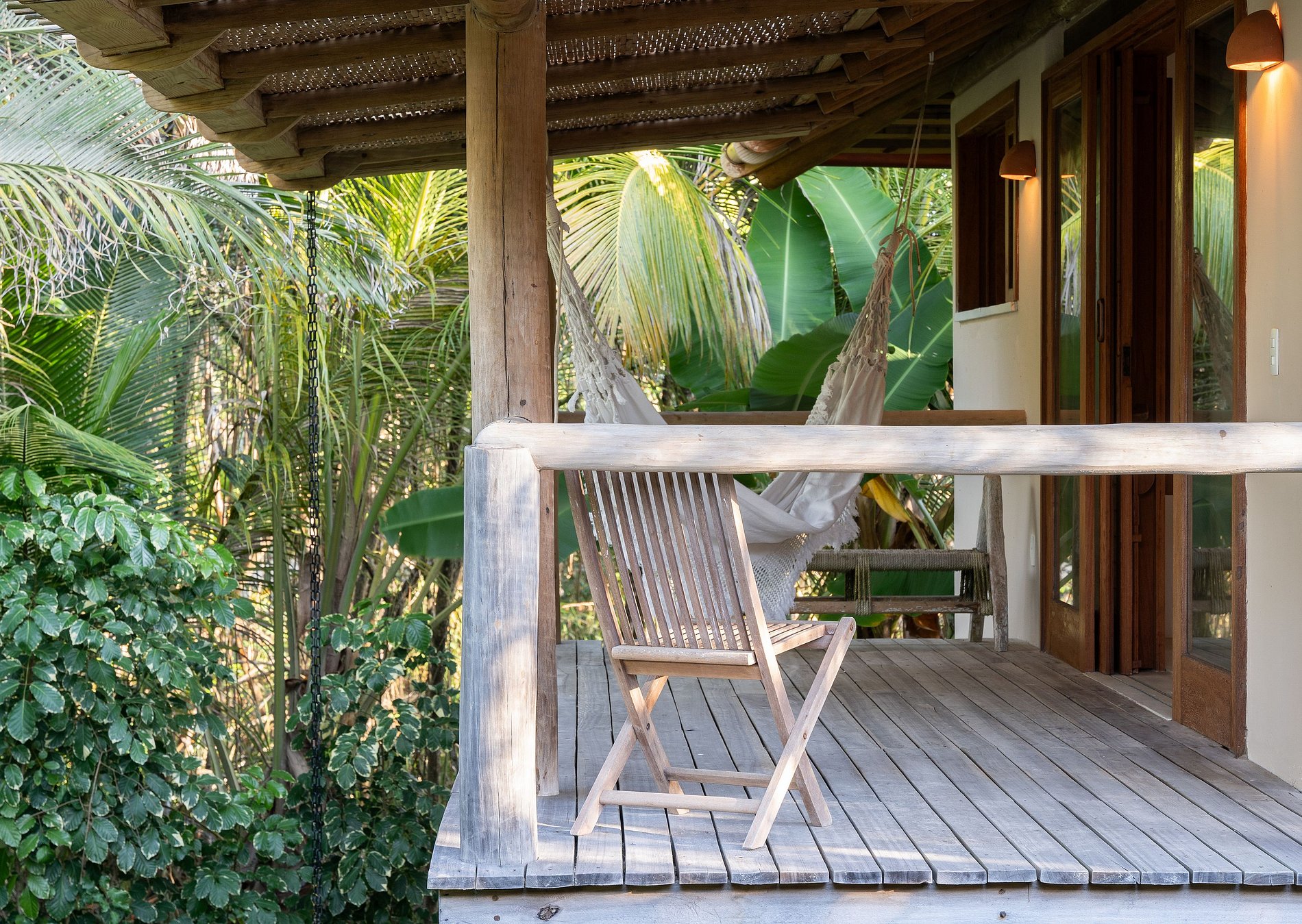 SUÍTE 4 - JARDIM com vista mar, varanda, cama king size, mosquiteiro, closet, banheiro, secador de cabelo, AC, cofre;
