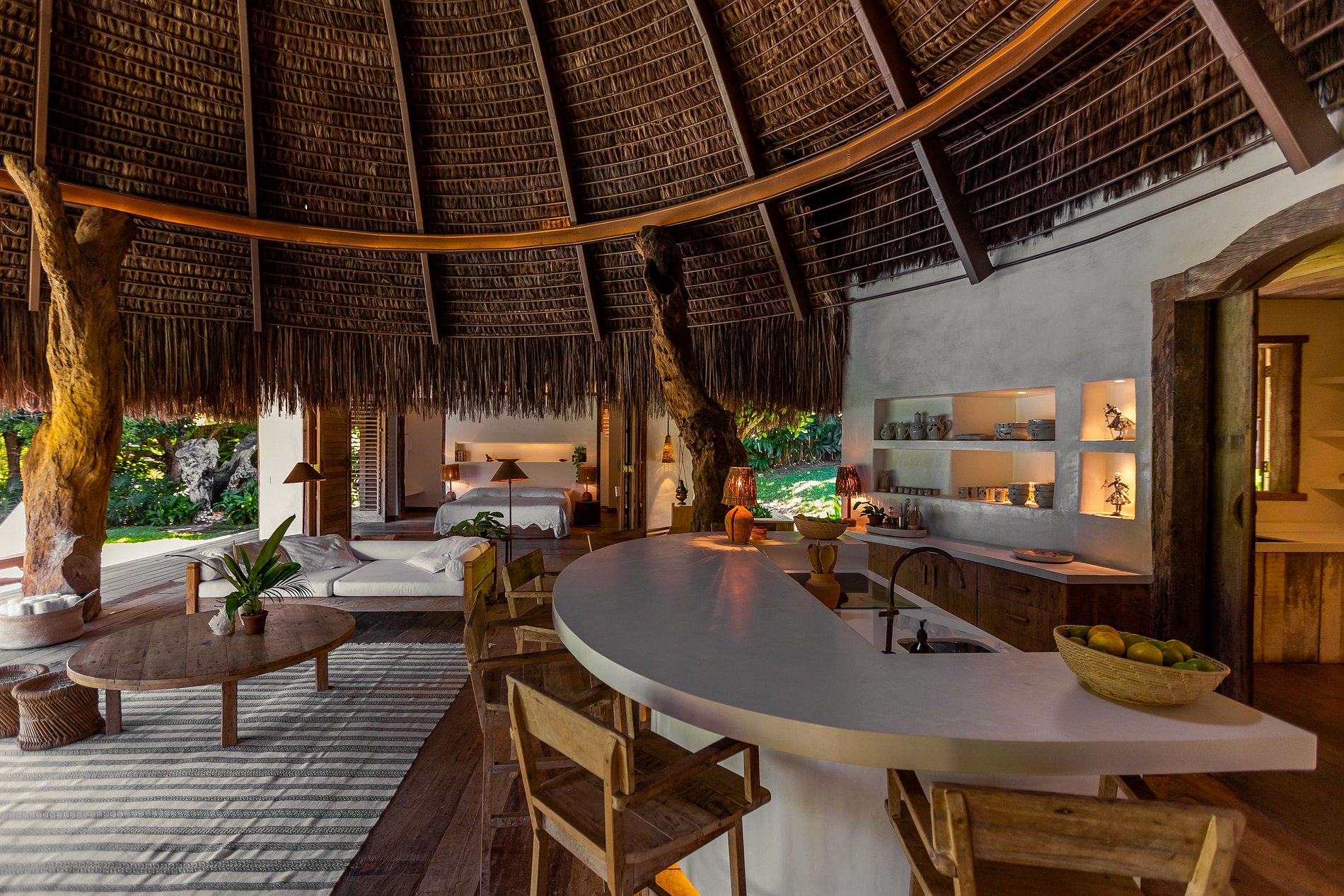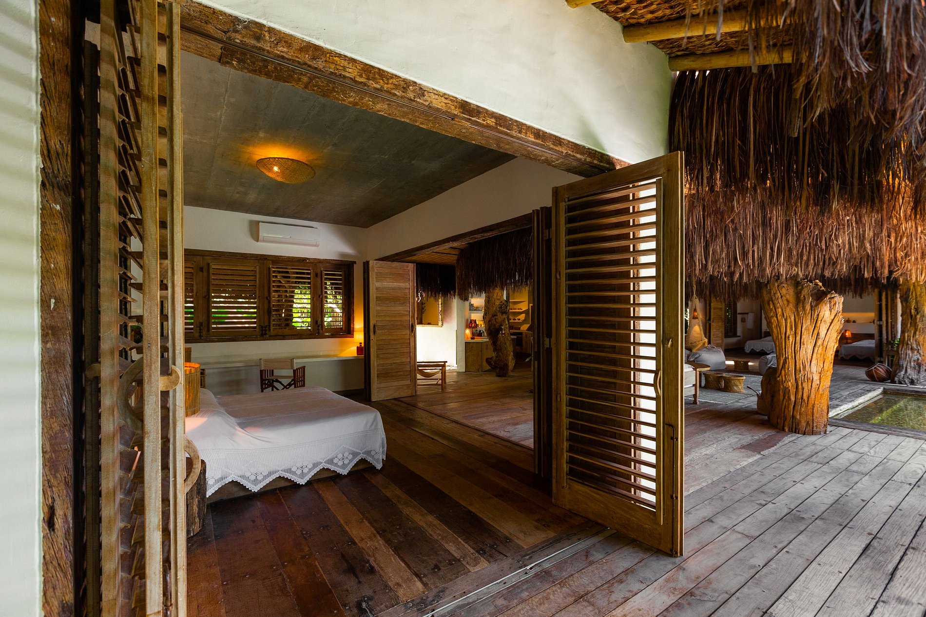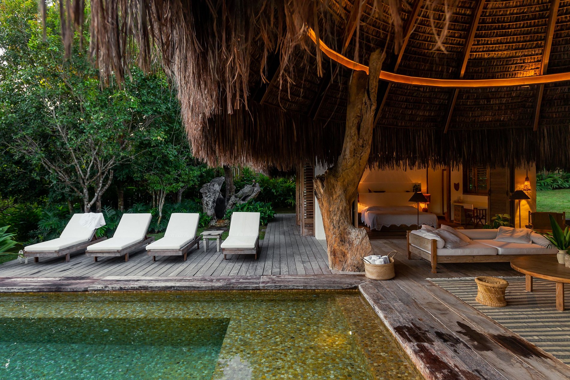 Ao redor da cozinha despontam três suítes e uma super piscina: um ambiente completamente inusitado que proporciona inspiração e um convívio harmônico aos seus hospedes.