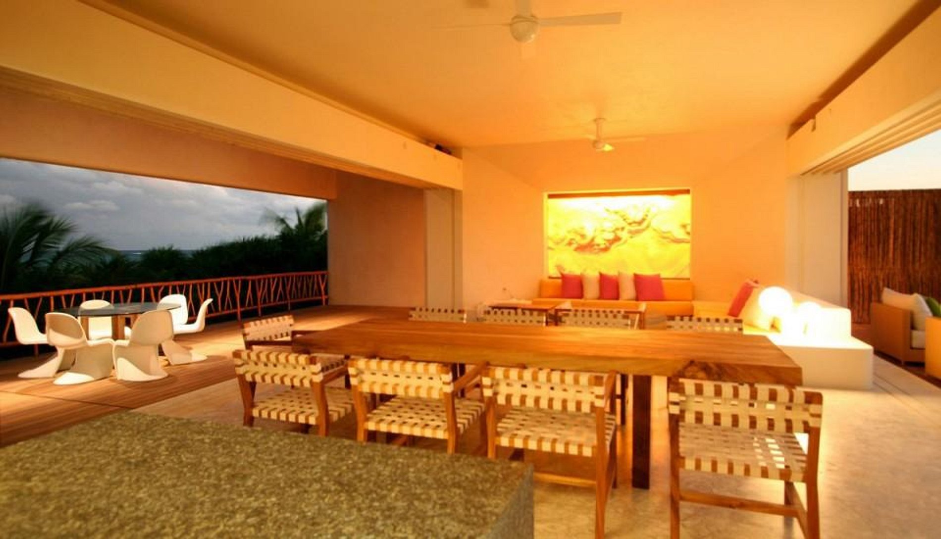 A mansão recentemente construída foi projetada por De Ytrube Arquitetos e é de estilo contemporâneo. Ela está situada em cinco hectares de vegetação exuberante e oferece uma impressionante praia de 300m e um adicional de 300 metros de orla da lagoa. A lagoa leva diretamente para os antigos canais maias.
