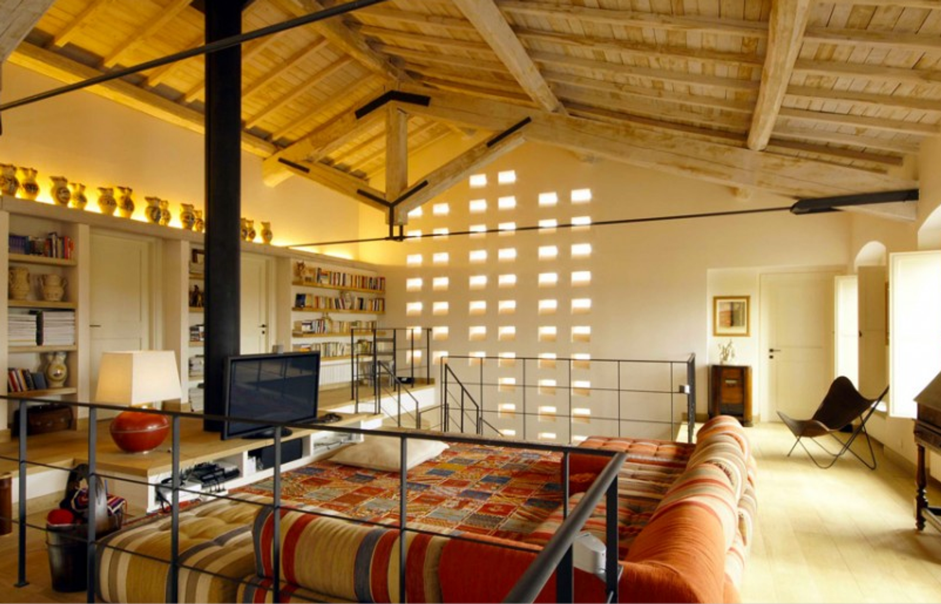Esta luxuosa villa toscana possui 12 quartos e espaço suficiente para garantir a privacidade para grupos de até 24 pessoas. A sala de estar tem uma lareira encantadora ao lado e abre para a sala de jantar e cozinha toscana totalmente equipada. O piso térreo também inclui a sala de música com piano de cauda, biblioteca, e sala de jogos e bilhar. No corredor há um escritório totalmente equipado e centro de fitness. Os hóspedes também encontrarão um salão, uma adega e comodidades de lavanderia. Os 12 quartos são decorados individualmente, cada um com ar condicionado, banheiro privativo (quatro têm banheira de hidromassagem) e linha telefônica.