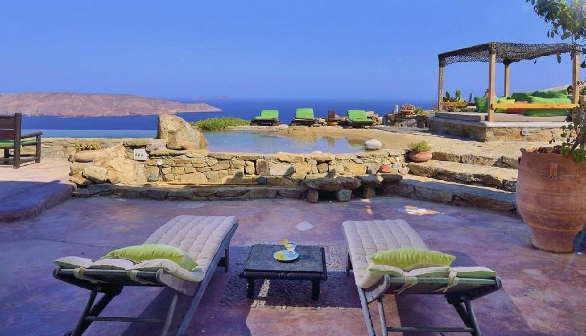 Vila Drakothea é uma encantadora, tradicional vila grega com vista para a ilha Dragonissi e a pacífica Baía Lia. Seu design reflete o estilo rústico de Mikonos, com sua elegância descontraída e conforto. Uma impressionante piscina de borda infinita de pedra. Numerosas plantas, flores e cactos cercam esta majestosa propriedade. A moradia inclui uma área de jantar ao ar livre, equipada com uma churrasqueira. É ideal para entreter enquanto aprecia infinitas vistas do mar.