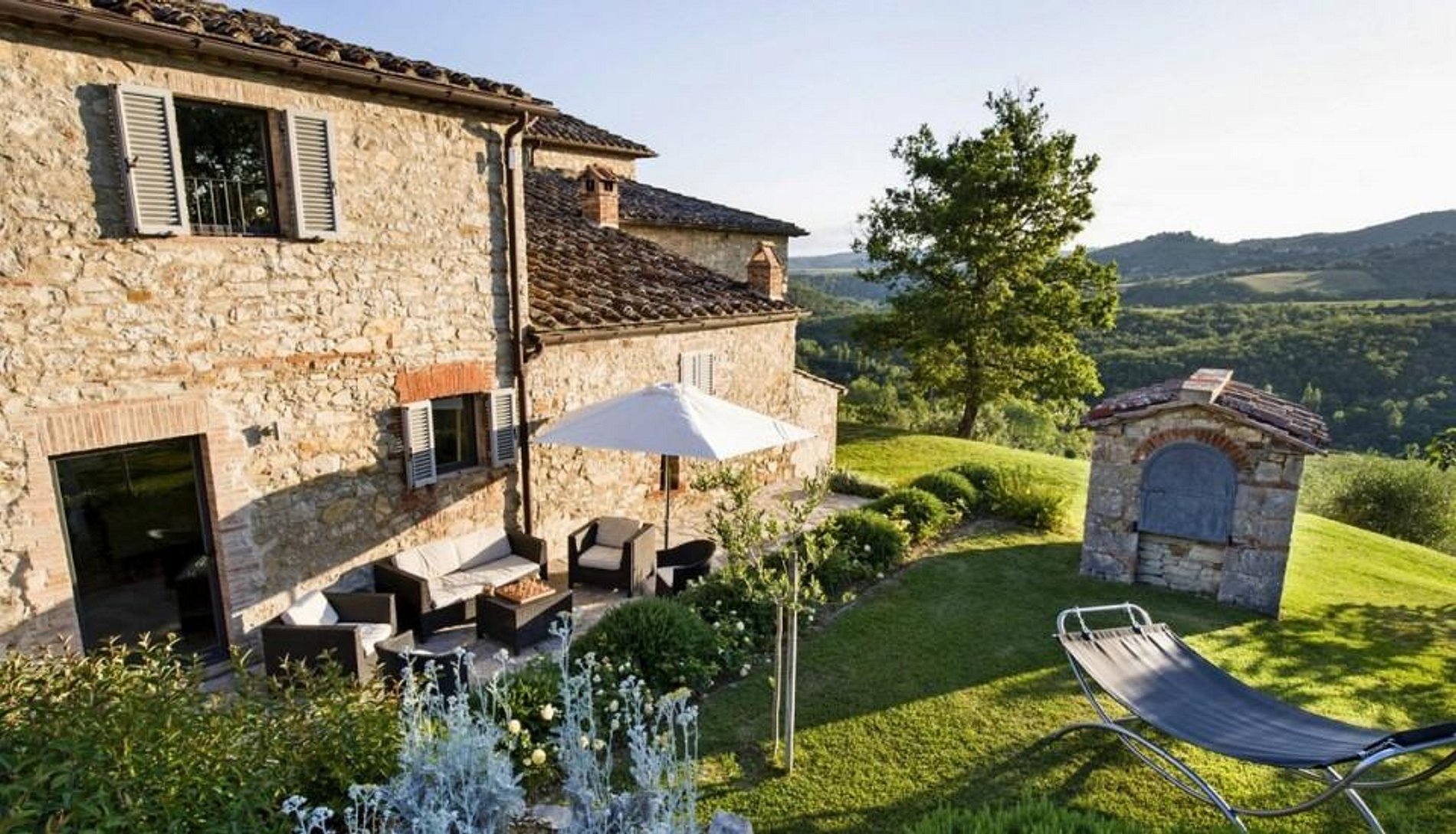 A fazenda de quatrocentos anos de idade apresenta tradicionais paredes grossas da Toscana, telhados de azulejos, lareiras maciças, tetos com vigas expostas e pedra. Adoravelmente restaurada, a casa agrega o melhor do estilo italiano, decoração contemporânea e conveniências modernas.