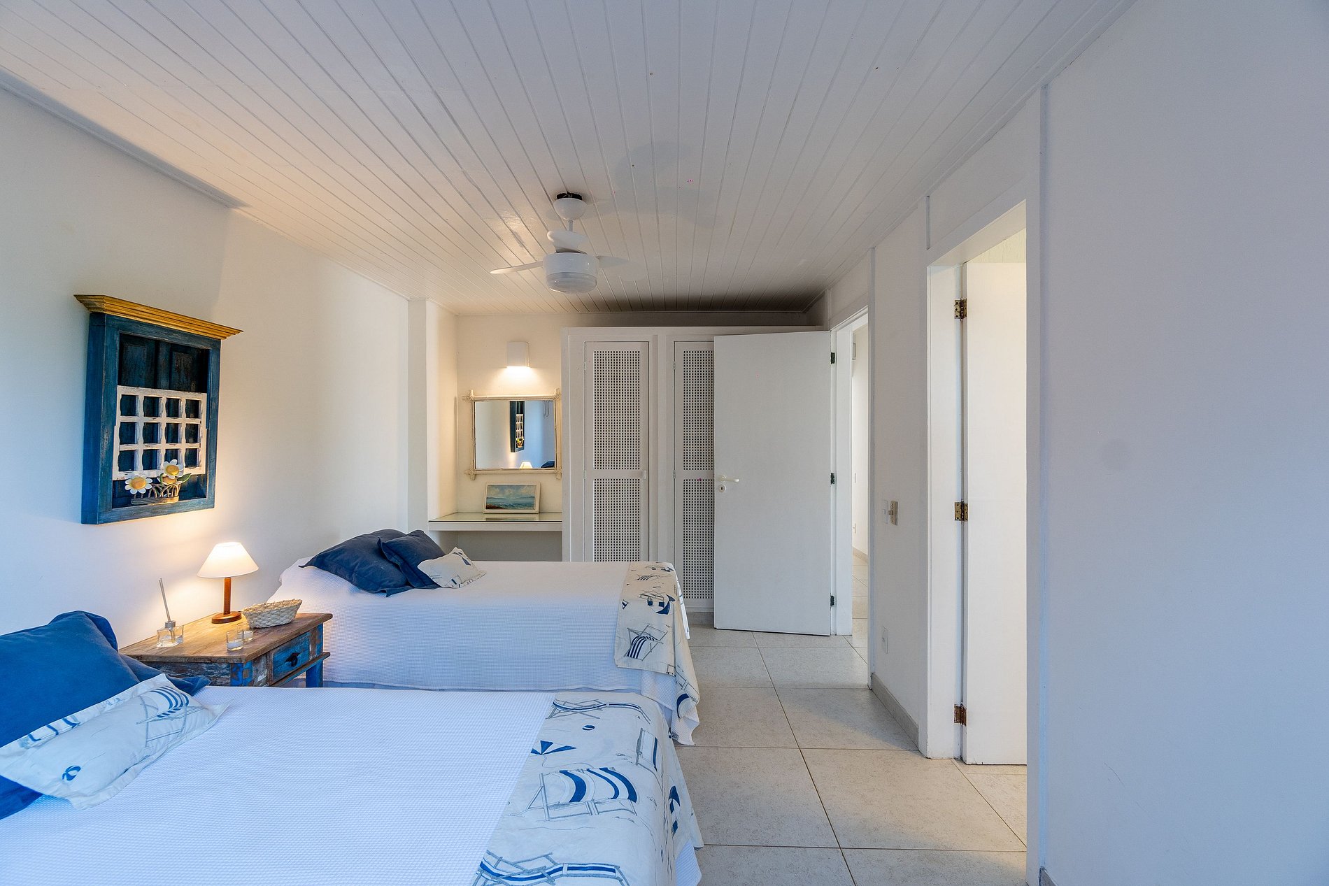 São 7 suítes, três delas com vista para a praia e uma com um espaço reservado para relaxar com jacuzzi, uma ducha e rede.