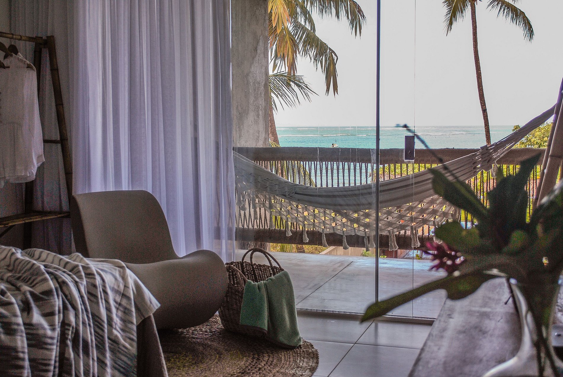 Todas as 5 suítes com a mesma estrutura com ar condicionado tipo split, sendo duas com varanda frente mar e 3 com vista Lateral, todas com aquecimento solar e mezanino na parte superior. O piso térreo é integrado com cozinha, sala de jantar, estar com TV e varanda, contando, ainda com DCE.