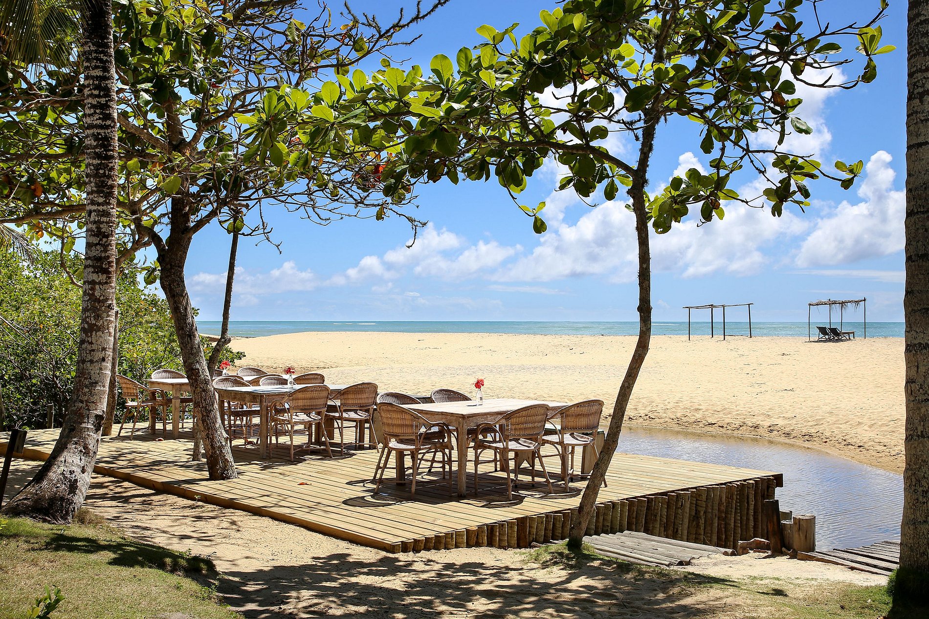 Barraca exclusiva de praia: Todo conforto e tranquilidade de cada bangalôs são acompanhados por um espaço só seu na praia, os hóspedes podem desfrutar de uma barraca de praia exclusiva, sempre a sua disposição.