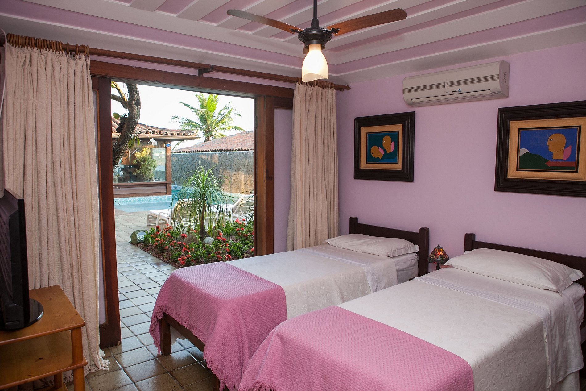 Charmosa casa “pé na areia” no centro da praia da Ferradura, com vista privilegiada do horizonte. Todas as 7 suítes oferecem ar condicionado, TV, lençol 300 fios e banheiro. Duas salas sendo uma de estar na beira do mar e cercada pela piscina e a outra com TV de 65’’ com SKY HD.