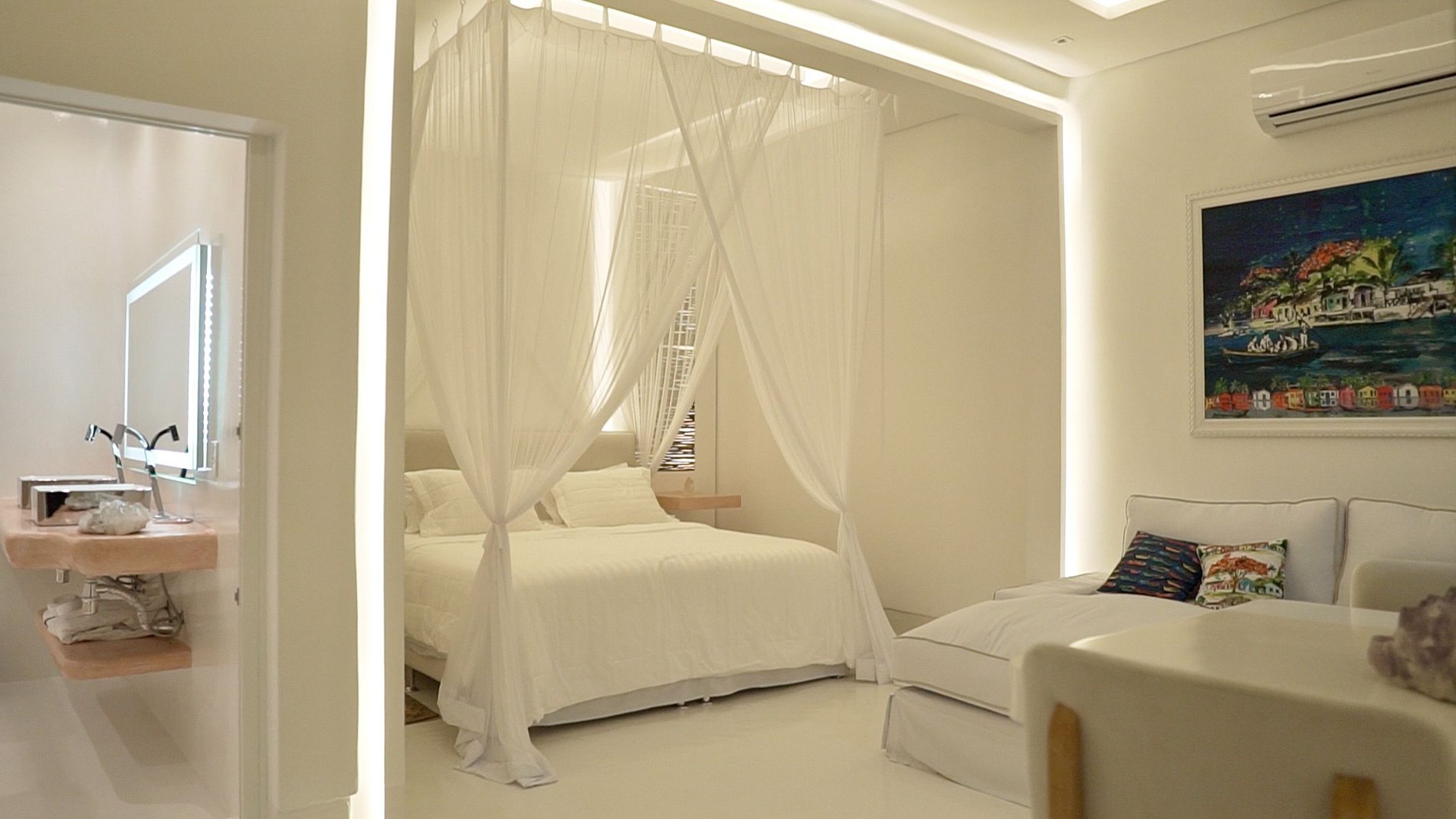 É uma casa artesanal, sem paredes. São 6 suítes equipadas com roupas de cama 600 fios, chaise longue espaçosa, TV com canais à cabo, frigobar e cafeteira Nespresso.