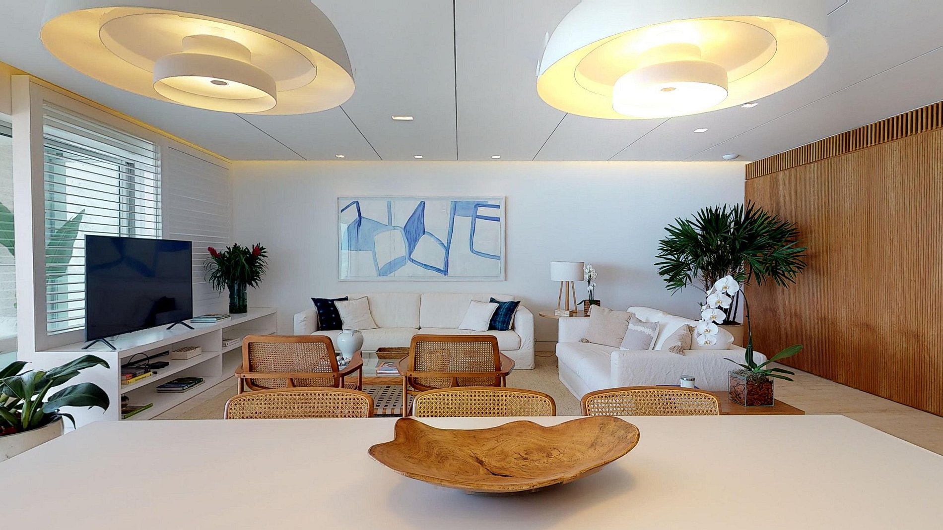 Diese geräumige Wohnung mit Blick auf den Strand von Leblon befindet sich an der Avenida Delfim Moreira, einer der wichtigsten Adressen in der Südzone von Rio de Janeiro. Das Viertel grenzt an die Lagune Rodrigo de Freitas und an die Stadtteile Gávea, Lagoa und Ipanema.