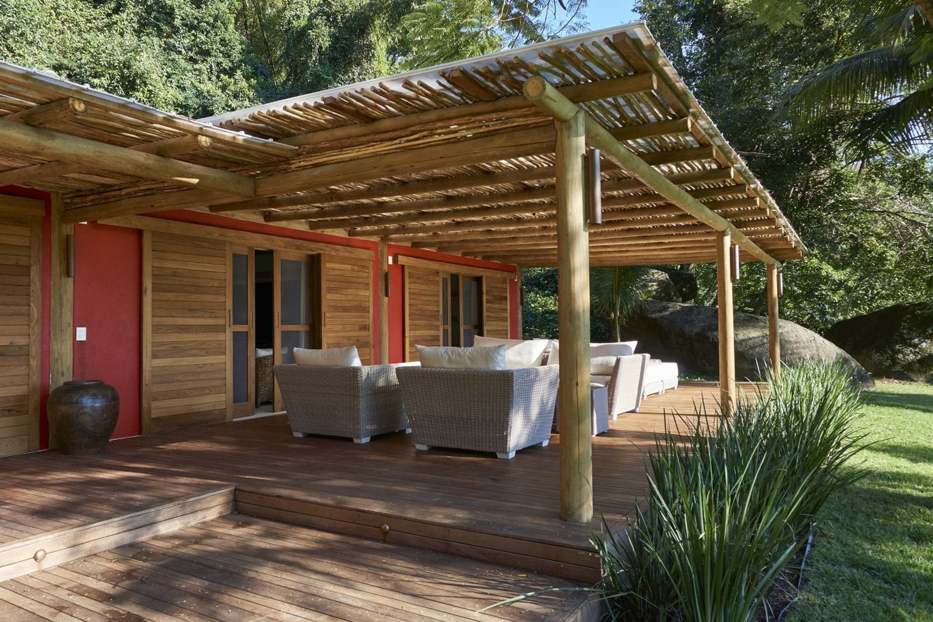 Entre as colinas verdes de Ilha Grande e atrás dos 400 metros de praia de areia branca encontra-se a propriedade espaçosa e encantadora da Praia do Iguassu.