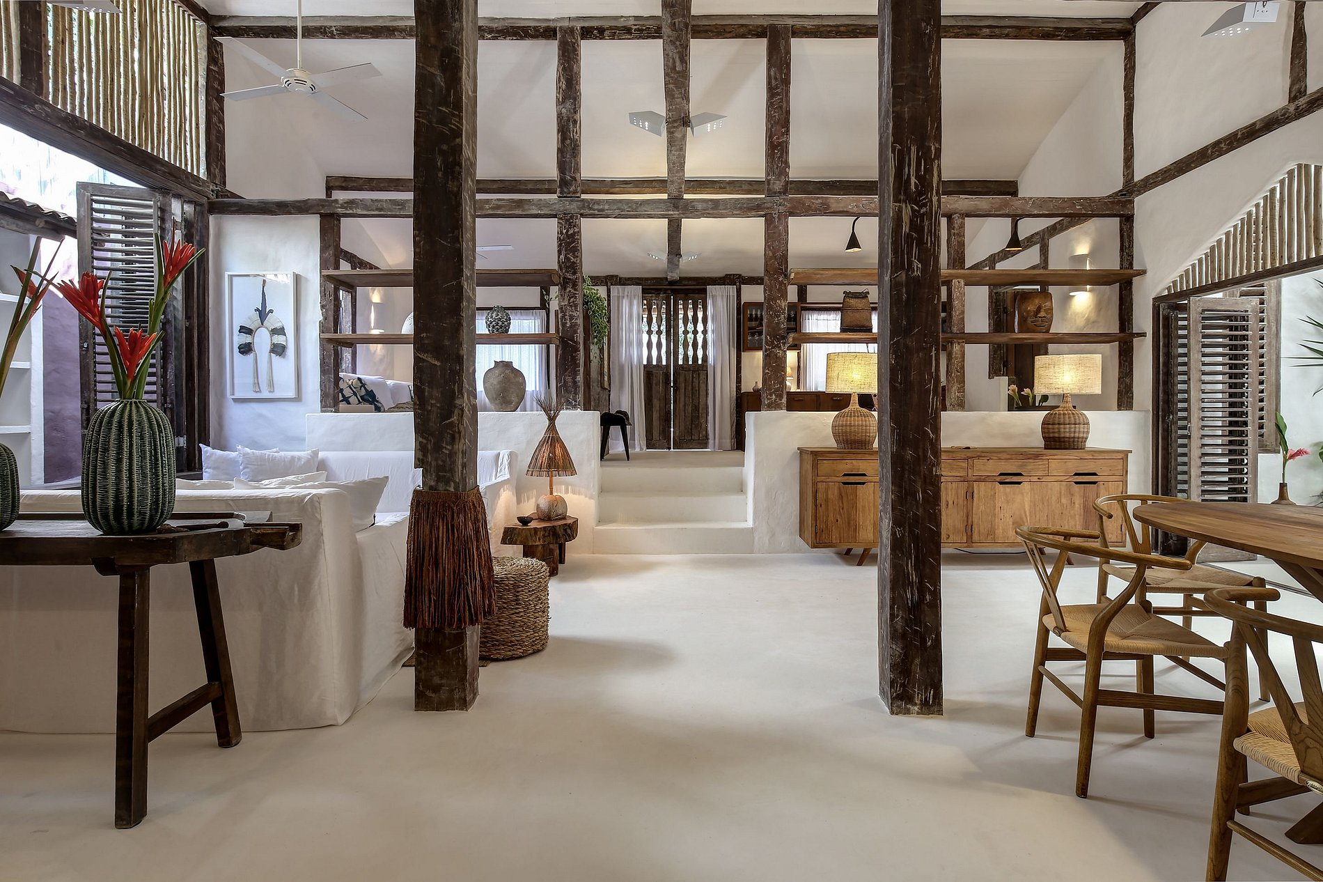 Das Haus ist charmant und gemütlich eingerichtet und bietet seinen Gästen bequem Platz mit 2 Master-Suiten im Haupthaus und 2 Suiten im Bungalow, alle mit Klimaanlage, Safe, Moskitonetz und Kingsize-Betten (in den Suiten des Bungalows zu Einzelbetten umwandelbar). Ausgestattet mit Bettwäsche und Handtüchern von Buddemeyer.