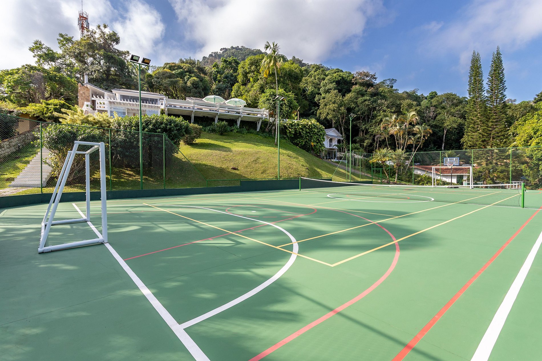 Im Außenbereich gibt es einen Pool mit Meerblick, ein Gazebo, einen Barbecue-Bereich mit Holzofen, einen Multisportplatz, einen Garten, eine Sauna, einen Jacuzzi und zwei weitere zusätzliche Badezimmer – eines im Gourmetbereich und ein weiteres in der Sauna.