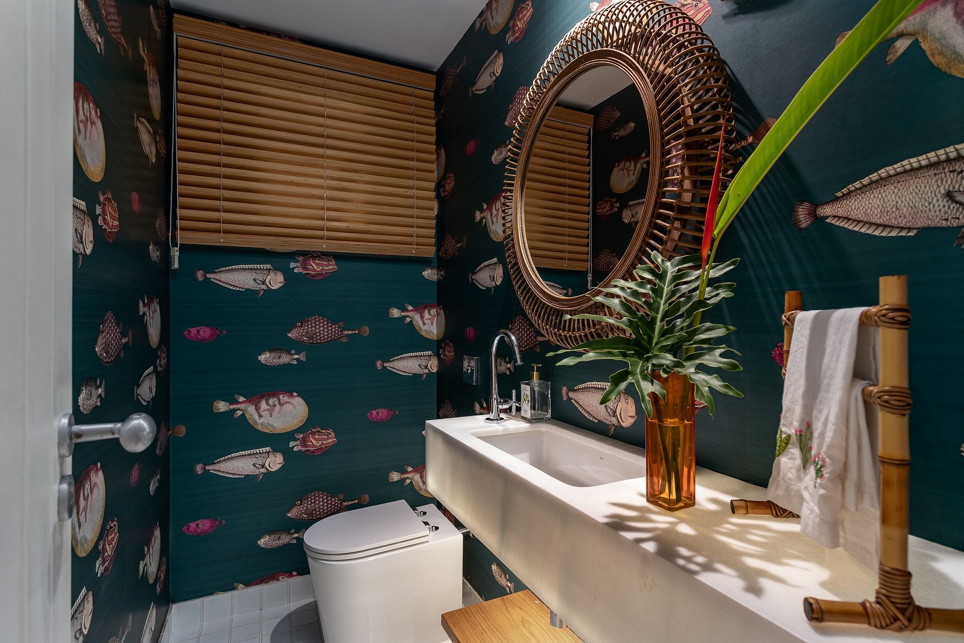 Für die Dekoration wurden verschiedene Elemente ausgewählt, um die Einzigartigkeit jedes Raumes hervorzuheben: Für die beiden Hauptsuiten und das Gäste-WC wurden Tapeten von Cole & Son (London) und Vorhänge von Lutèce gewählt; in der Suite im Erdgeschoss sorgen Leuchten und Kissen des Künstlers Jonathan Adler (New York) für besondere Akzente. Die Stoffe des Sofas im Wohnzimmer und der Sessel im Mezzanin stammen aus dem Atelier von Pierre Frey (Frankreich).