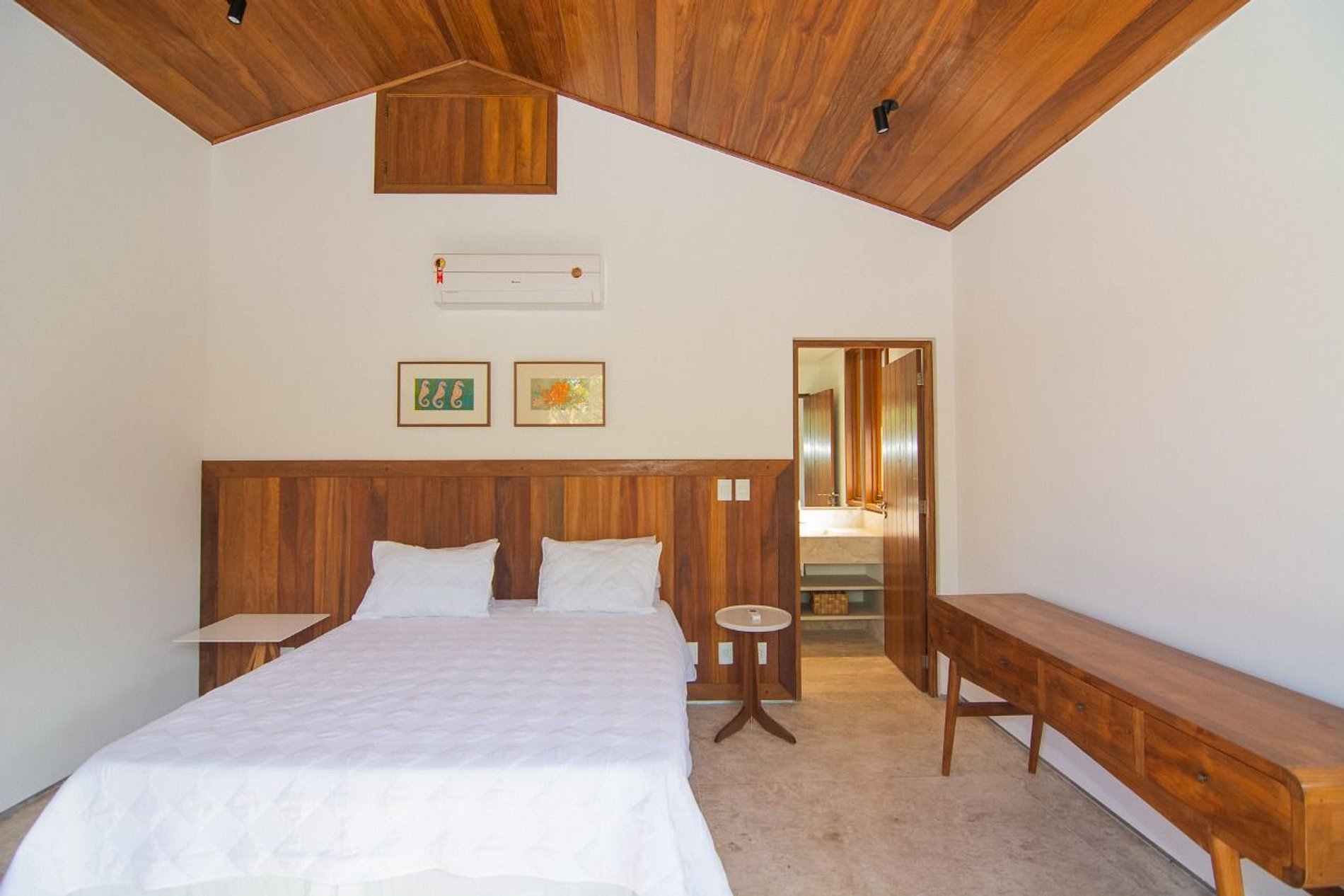 Possui 5 suítes climatizadas, sendo uma das suítes com jacuzzi, dependência e closet. Acomoda confortavelmente até 10 pessoas.