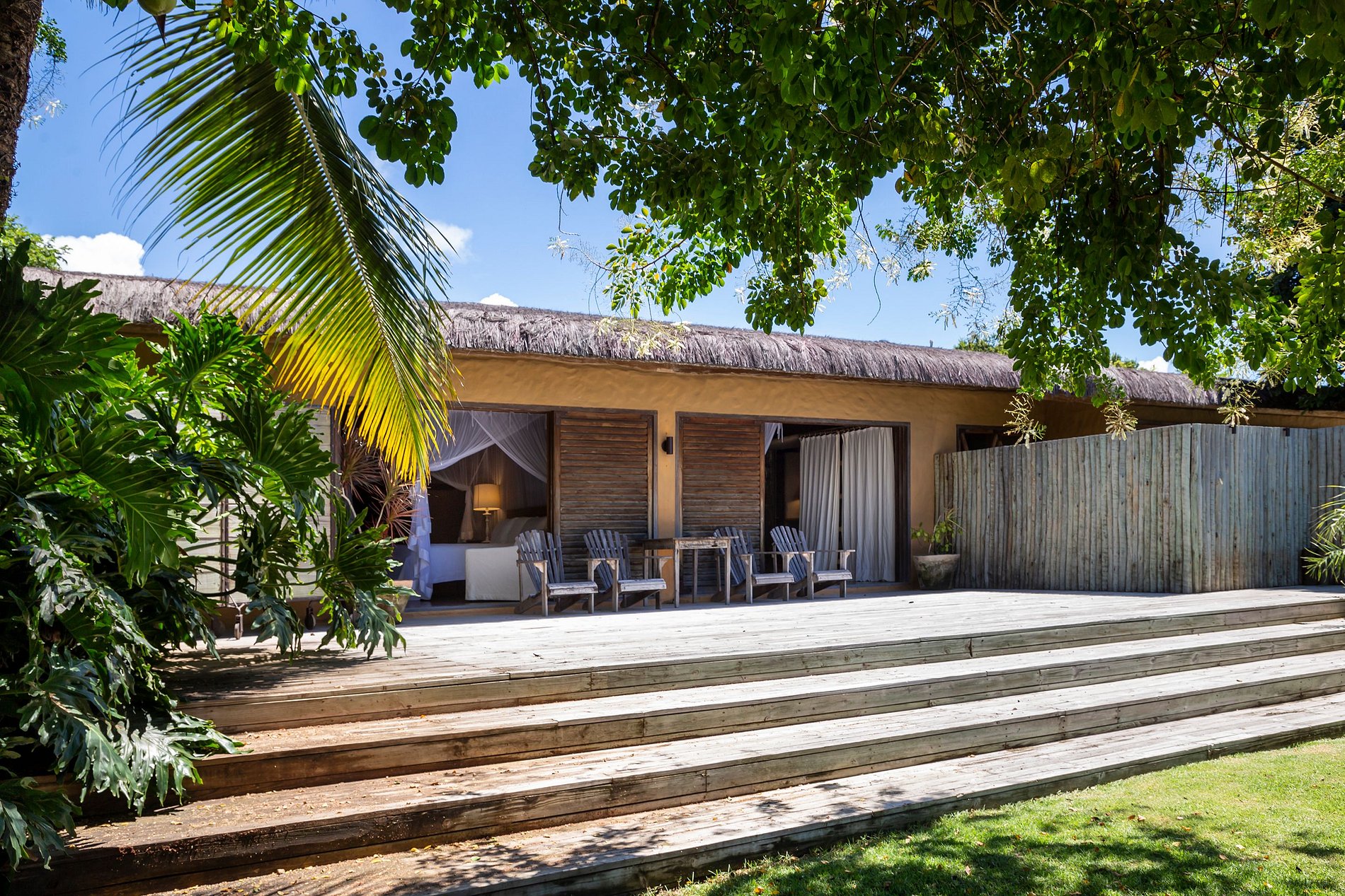 A Casa Africa no Condominio Altos de Trancoso, é uma das poucas casas com vista livre para o mar e amplo jardim.