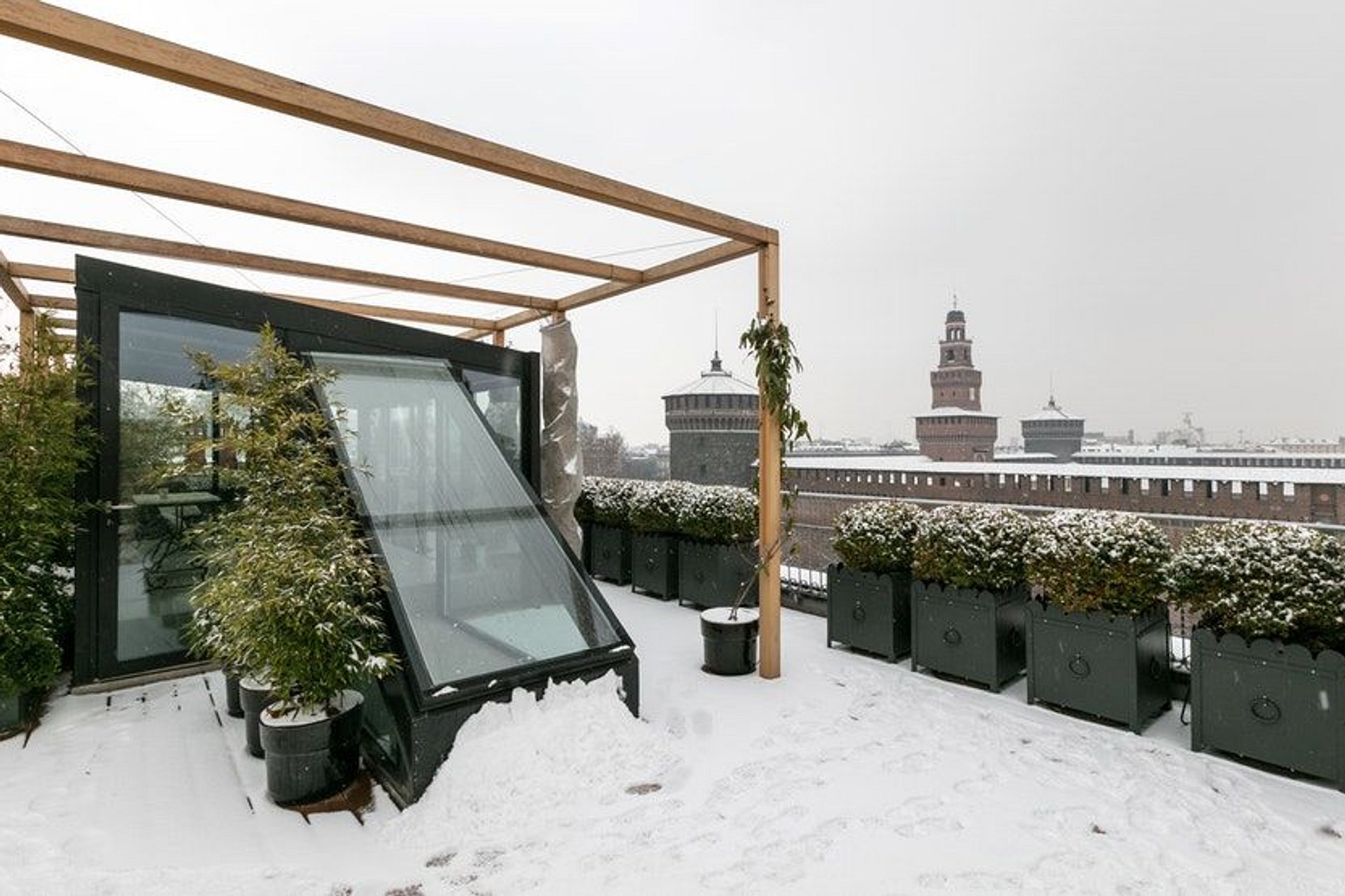 Apartment Castello is a one bedroom, one bathroom home in Milan. This home’s sitting room is a quietly stylish place, with low-key design furniture and many books and artworks, while the master bedroom’s super-simple, but for its rose-pink ensuite. Then there’s the terrace, which has a glass-walled dining area and a verdant outside space, both with striking views of the nearby Sforzesco Castle. You’ll find many other museums and galleries nearby too, and this central area’s also dotted with shops and restaurants. The nearest metro station – Cairoli Castello – is only an eight-minute walk away.