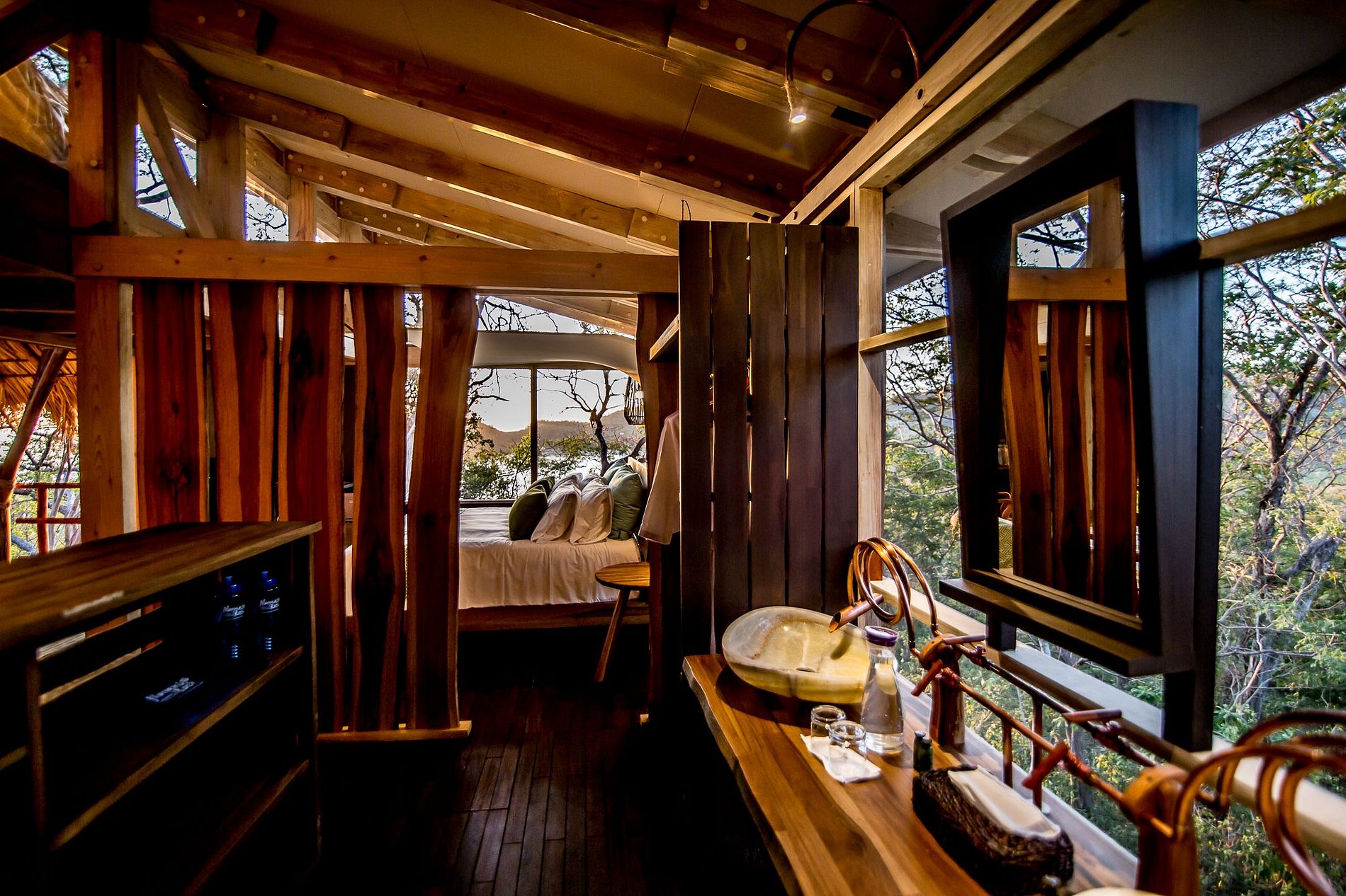 Set amidst the canopy of a verdant nature reserve, Morgan’s Rock bungalows give guests the incredible feeling of what it would be like to live in a tree house. The structures are large, airy, comfortable and elegant, with independent pools on the balcony, beds suspended by ropes, living spaces and other indispensable amenities to make the experience unique. The stretch of beach on which the hacienda is installed is for the exclusive use of its guests and the sea turtles that lay there. The property also includes the farm El Aguacate, where there is an organic vegetable gardens and shrimp farming. In this way, fresh ingredients are the basis for the recipes of the restaurant La Bastide, which, next to the Commodore Bar, sits on the edge of the beautiful open-air pool overlooking the sea. As an example of the use of sustainable technologies in the lodge, solar panels guarantee hot water in the showers. There is also a large wooden platform for yoga and relaxation sessions.