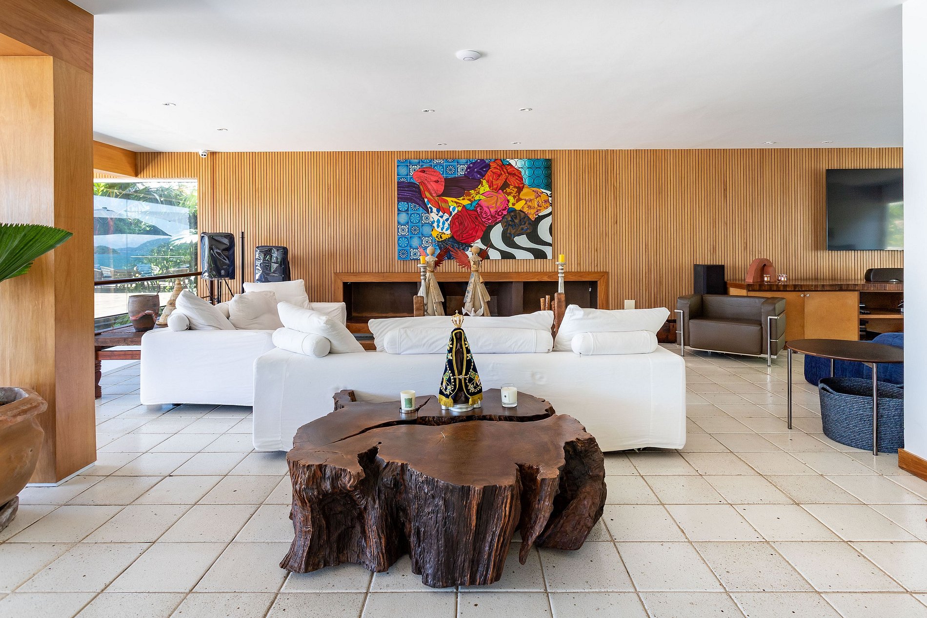 The main house has a lounge at the top with an incredible view, living room, dining room and 4 suites.