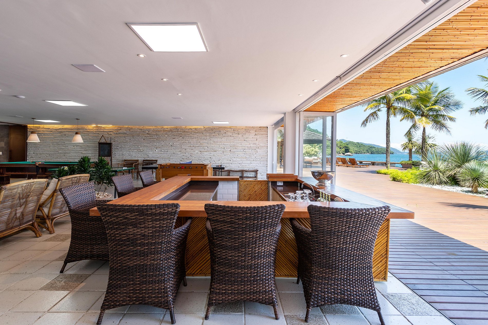 In this paradisiacal setting, it offers numerous experiences such as its own pier with beach support to relax by the sea, swimming pool, private gym, sauna and jacuzzi, bar and games room.