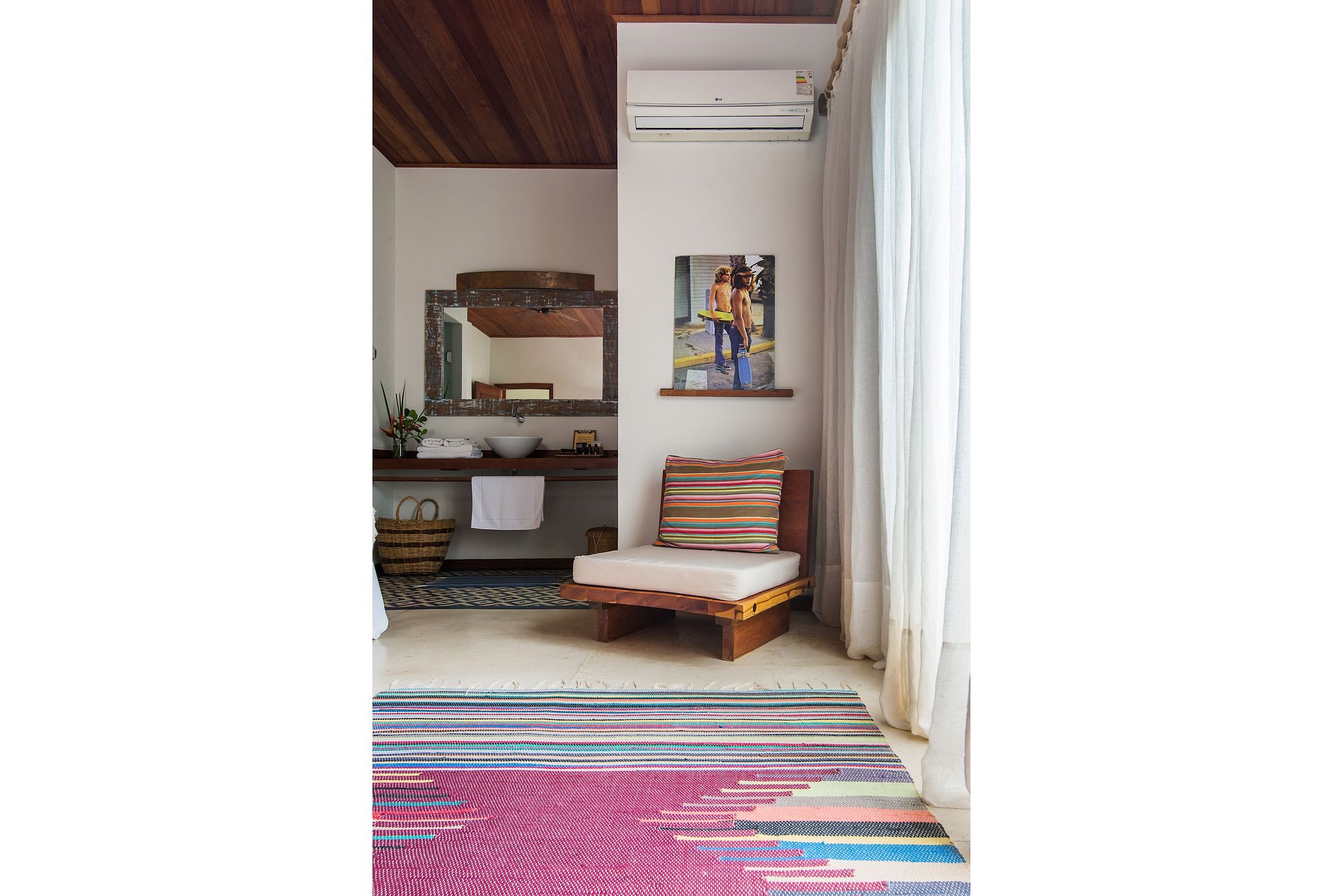 The Master Suite is the Hotel’s most special accommodation. There are 75sqm, enough space to offer a special experience for a couple or host a family, as if necessary, it is possible to connect this suit to another room. A spacious balcony places hammocks for a rest with an unique view of the fishing boats in the sea.