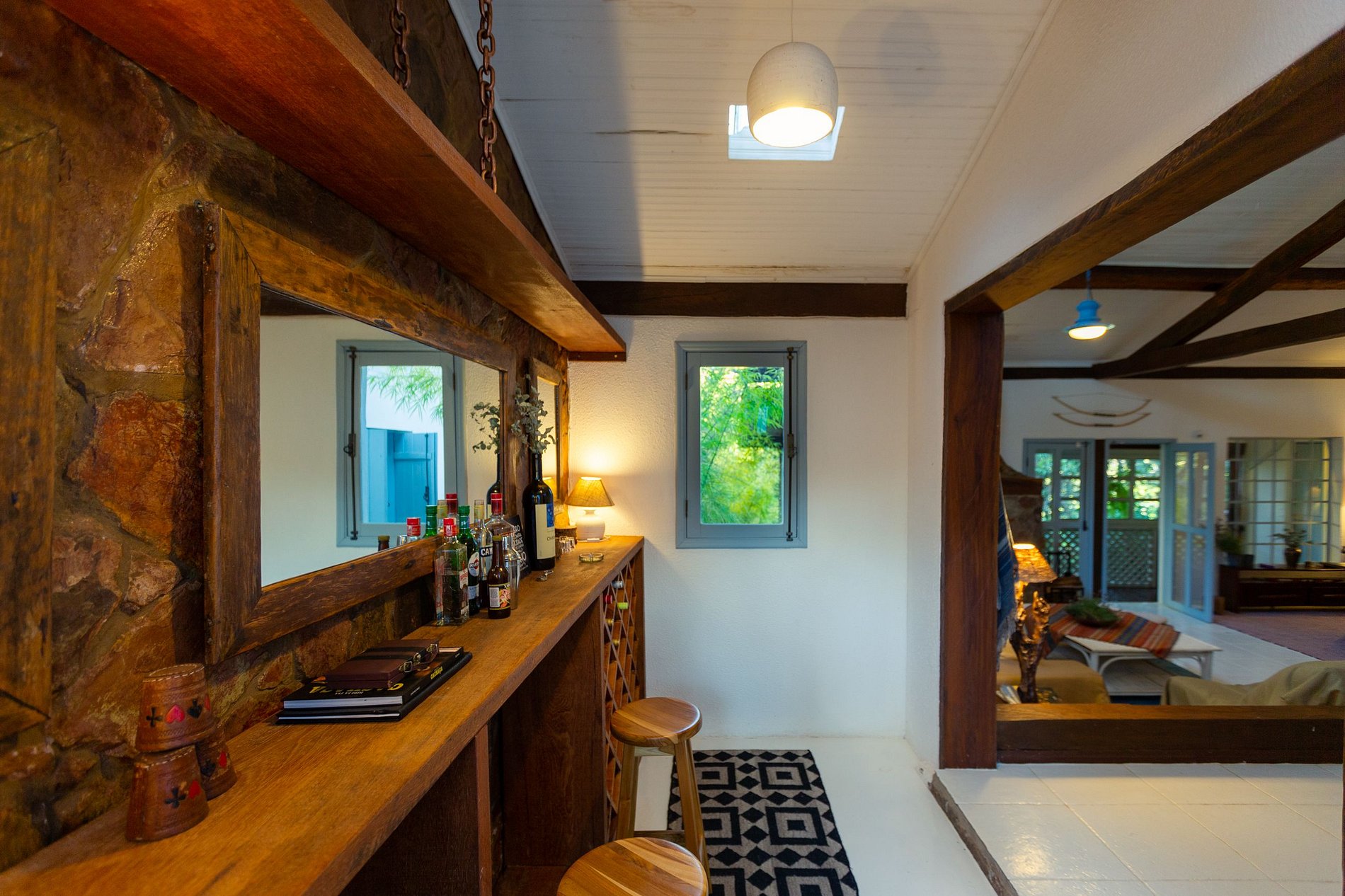 Vila Alto Paraíso is more than just a retreat; it’s a place of healing and connection with nature. Nestled in the vibrant Chapada dos Veadeiros, with stunning views of the Araras Valley, this villa blends the unique beauty of the cerrado with the charm and comfort typical of Trancoso. The house features 4 bedrooms (2 king, 2 queen) and an annex with bunk beds for 2 children, making it perfect for families or groups. The spacious living room with a fireplace, veranda, and floating deck provides direct access to the garden, where a firepit offers a cozy setting for relaxing evenings. The outdoor kitchen is fully equipped with an industrial stove, and there’s also a pool with a small river and waterfall, all just a short distance from the city center. A 24-hour concierge service is available to help arrange tours, hire guides, and recommend the best restaurants in the area. The villa’s menu is based on fresh, organic ingredients, offering a hearty breakfast before embarking on the local trails. Every detail is taken care of by the attentive staff, from grocery shopping to full support during your stay, ensuring a memorable experience. Details: • Pool with lounge chairs • Wi-Fi • Air conditioning in all suites • Barbecue • Terrace with gourmet kitchen • Fully equipped indoor kitchen • Complete bed linens • Fireplace