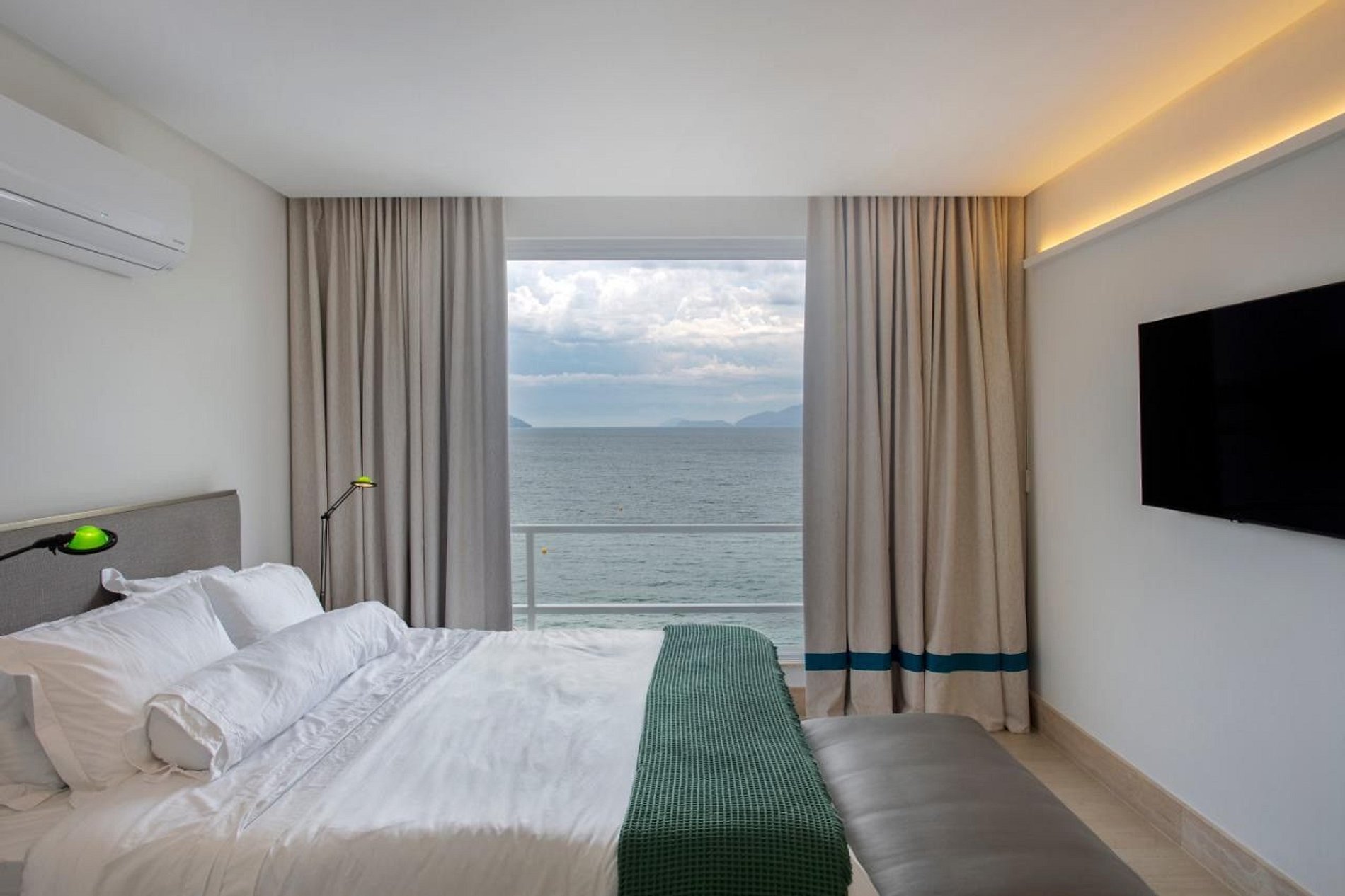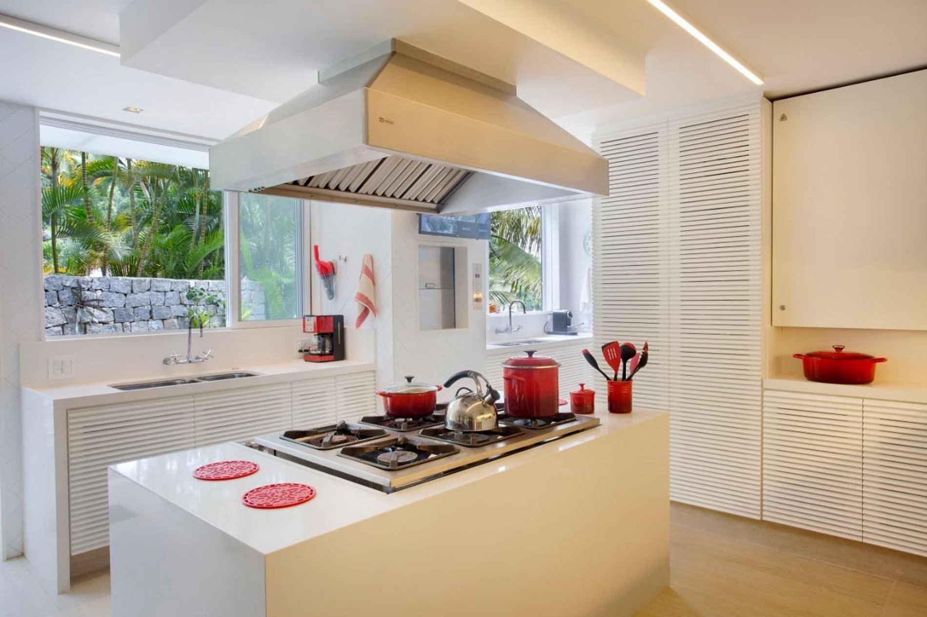Also with sea view, steam room and living and dining rooms. The TV room with home theater, a cozy sofa and armchair Sérgio Rodrigues.