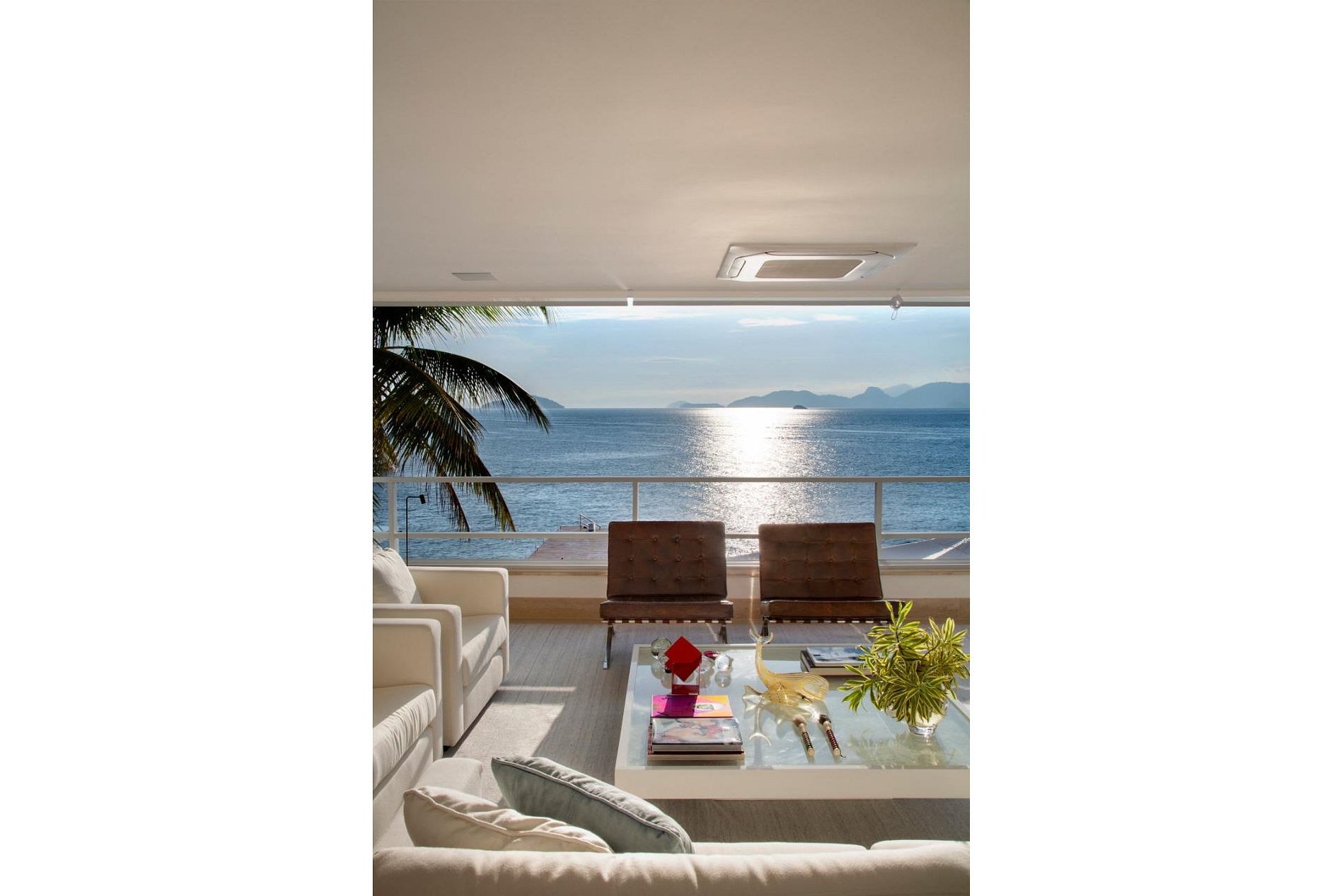 Also with sea view, steam room and living and dining rooms. The TV room with home theater, a cozy sofa and armchair Sérgio Rodrigues.