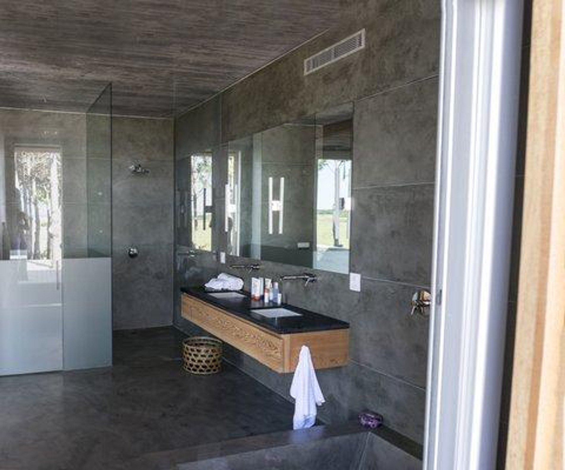 Breath taking Vila Ruckenwind was designed by renowned Architect Martin Gomez in 2015, at the very best location of paradisiacal Jose Ignacio. Very modern, with lots of space, state of the art technology and most of all, one of the grandest views of the whole area, to the Atlantic Ocean, the Jose Ignacio Lagoon and the Sunset. It offers 6 en suite bedrooms, all with individual air conditioning, under floor heating system, plasma TV, placards, and complete bathrooms. The master suite opens to the swimming pool veranda and the best views. All surrounded by balconies, with the swimming pool with an outdoors fire place facing the views. Huge covered BBQ area with a table for 20 people and pizza oven. Big gourmet kitchen, integrated to the dining room. Large living room with fire place and Plasma TV screen. WiFi for the whole house and Direct TV. Located at the gated community of Medellin, in Jose Ignacio, the house offers 530 sqm of construction on 10.000 sqm of land. Laundry room, storage room, safety features. Professional landscaping, very good taste decoration, high quality furniture, top of the line appliances and modern technology