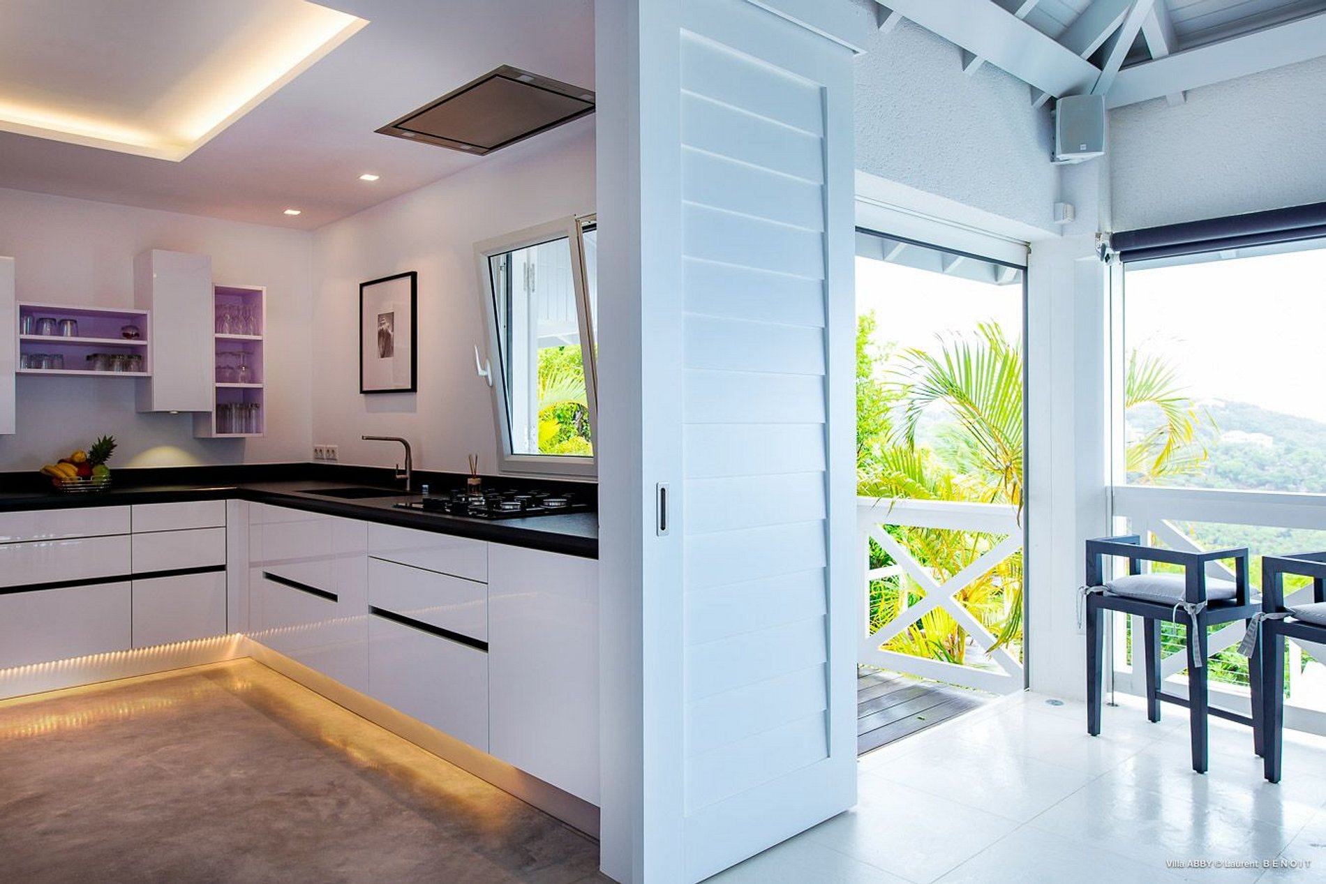 As peaceful and remote as it is, Villa Abby is not completely cut off from the pleasures of the Caribbean. Its guests can observe the kite- and wind-surfers zipping around Grand Cul-de-Sac, or simply enjoy the beauty of the verdant hills and sparkling sea, and the islets of Tortue, Toc Vert, and Fregate, as well as Marigot Bay and Petit-Cul-de-Sac too. Those stunning views are to be found from every room, as well as the outdoor living and dining areas. In addition, several beaches are just a few minutes’ drive away.