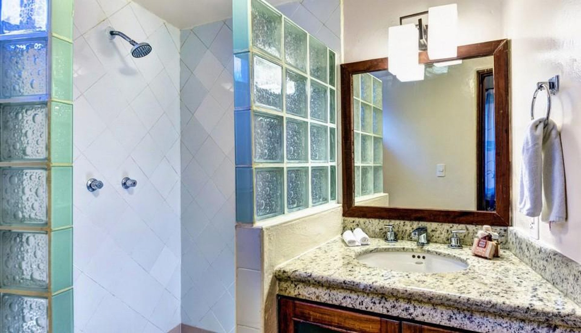 The freshwater swimming pool is beachfront, surrounded by a privacy wall, and offers wide beach and turquoise Caribbean views. There is also an adjacent jetted plunge pool and convenient outdoor shower. Ample outdoor living and dining areas also sit beachfront, and there is a convenient barbecue for al-fresco meal preparation. Pool decking is ample and three of the four bedrooms open to pool terraces.