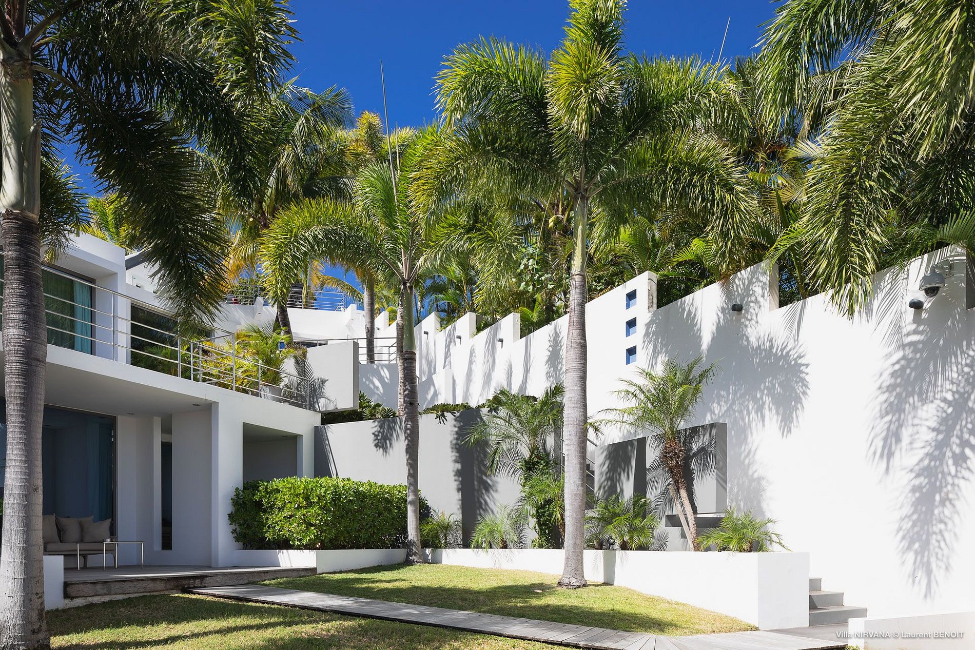 In Buddhist teachings, Nirvana is the ultimate peace of mind. In Hinduism, it is the union with the divine and the experience of bliss. In St. Barth, Villa Nirvana (NIR) is a serene temple of design, where bliss and peace are easily realized. In the uniquely 21st-century rental property, unusual architecture and contemporary art set the stage for a visual audacity unprecedented in St. Barth and probably in all the Caribbean. An almost monochromatic universe creates an air of contemplation, until splashes and touches of color interrupt like the unexpected sound of laughter. Chic and yet comfortable, Villa Nirvana is a level above.