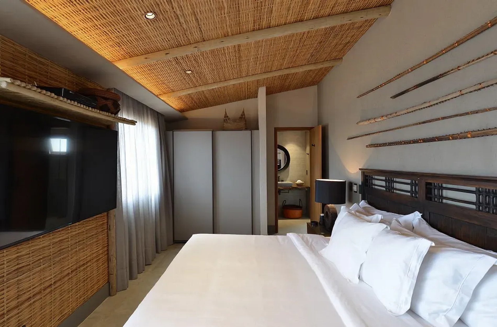 On Brazil's most seductive island, a small inn with just 11 rooms has become Fernando de Noronha's most desired address. Since it opened in November 2016, Pousada Maria Bonita has become an exclusive refuge for those looking to enjoy all that spectacular nature in an environment that mixes the rustic with the contemporary. Signed by decorator Ângela Chinasso, the decoration harmonizes a well-selected collection of works of Brazilian popular art with the contemporary design of the furniture and the pool – the latter created by Jóia Bérgamo. The neutral tones of the roots, baskets and wood weaves bring a refined simplicity to the interior, in an undeniable contrast with the exuberance of the green and blue of the forests, the sky and the beaches of Noronha.