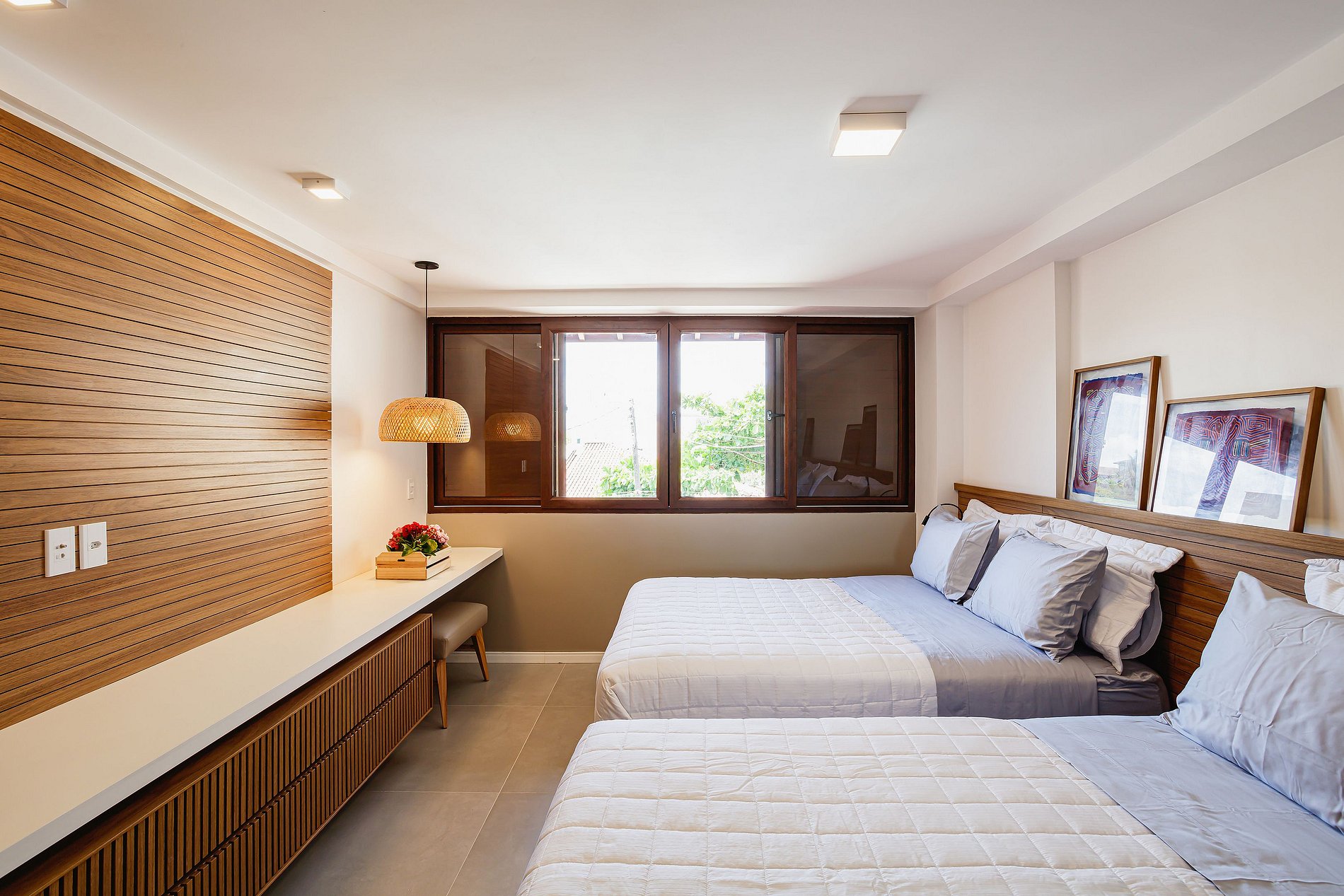 Todos os quartos das casas são suítes bastante espaçosas, com tvs smart, banheiros amplos, toalheiros elétricos e closets completos.