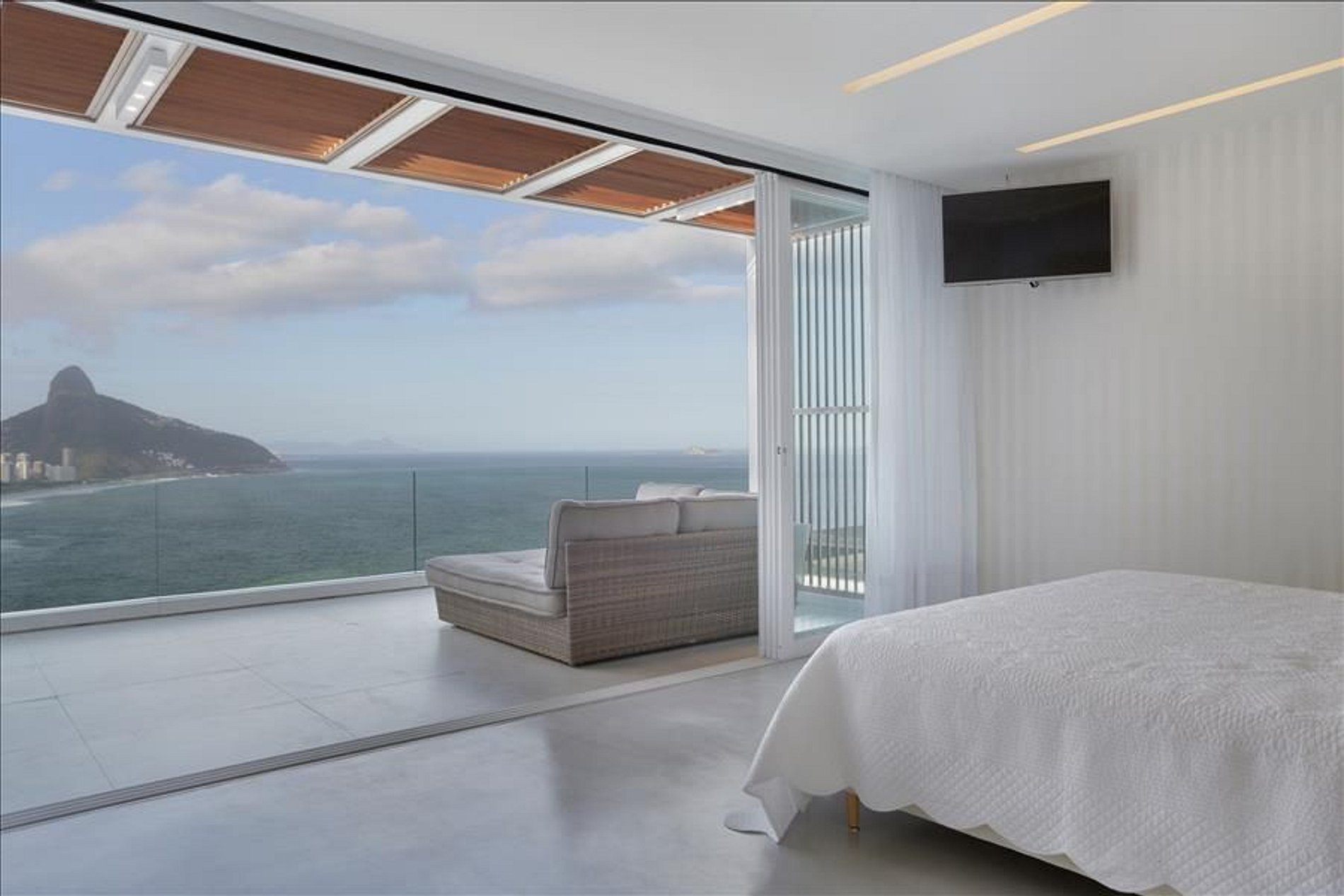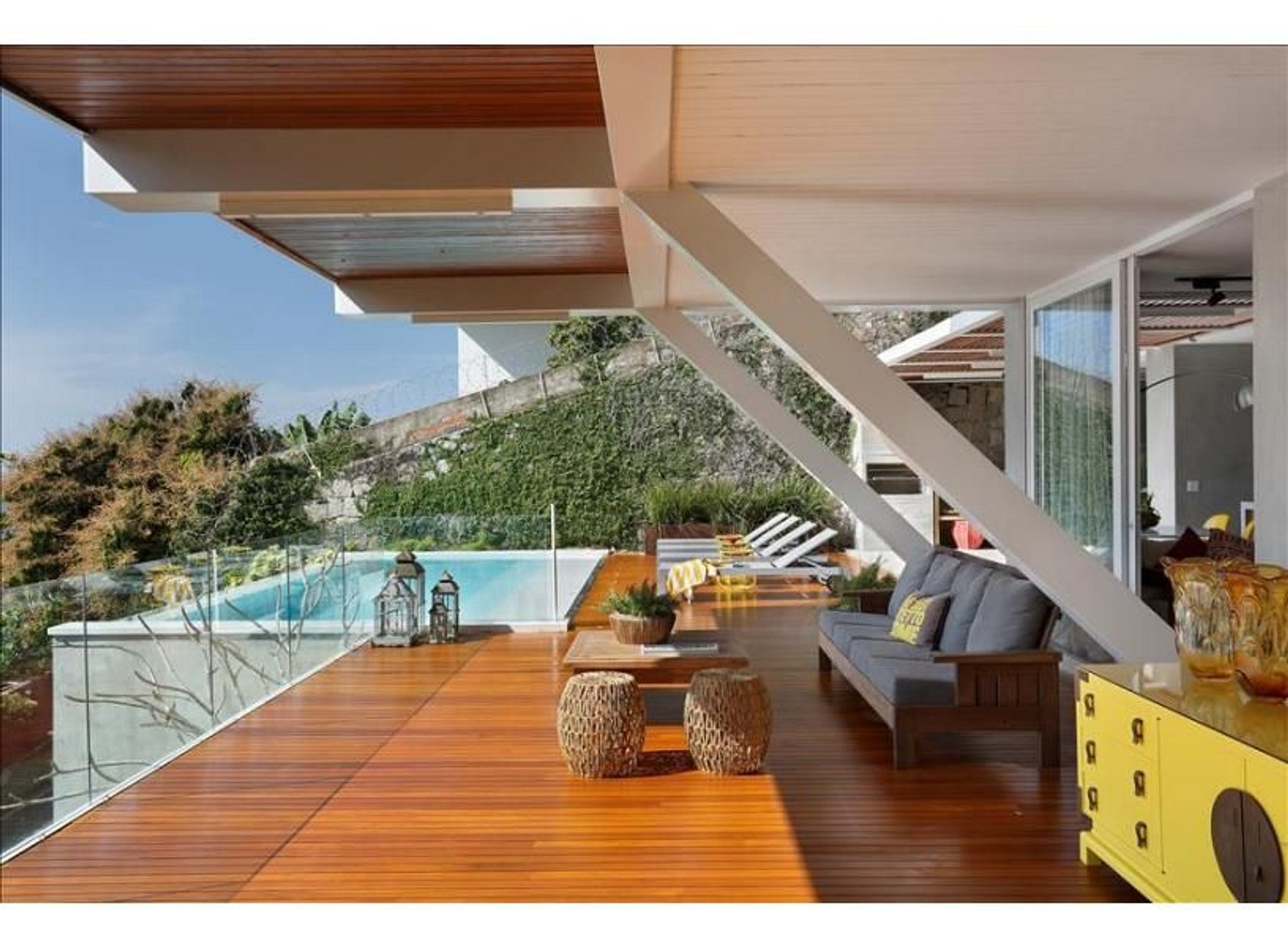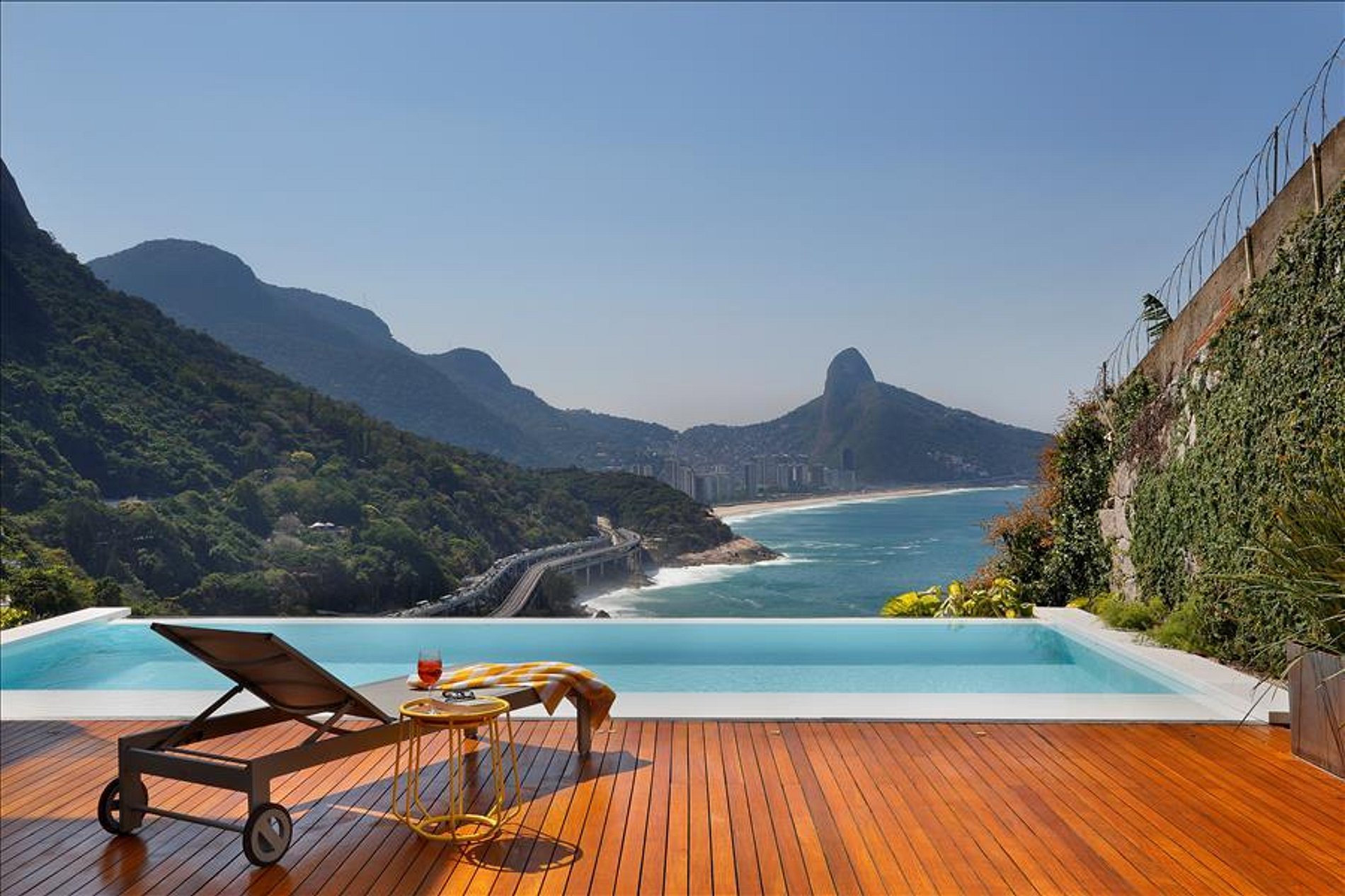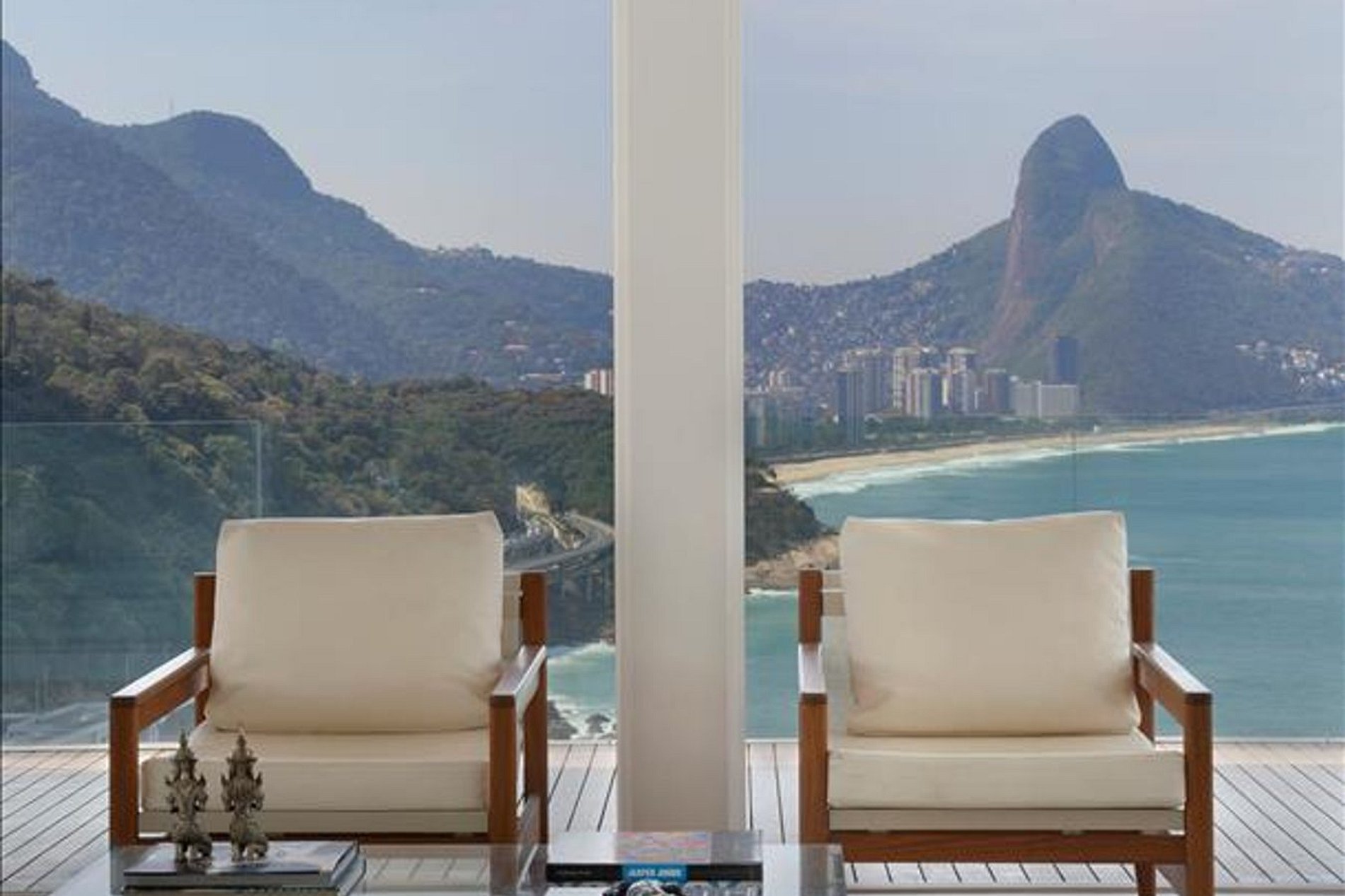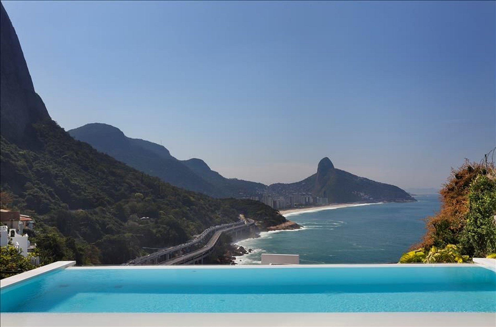 Its architecture in the clean style and its glass walls only highlight the beautiful nature that surrounds this very high luxury villa. The infinity pool is one of the highlights of this amazing property.The neighborhood Joatinga also called Joá is a paradise that connects São Conrado to Barra da Tijuca. To be very private and secure the region is made up of very high standard residences. In their houses located in the mountains it is possible to glimpse the striking landscape of the beach that has the same name of the neighborhood and the nature around.