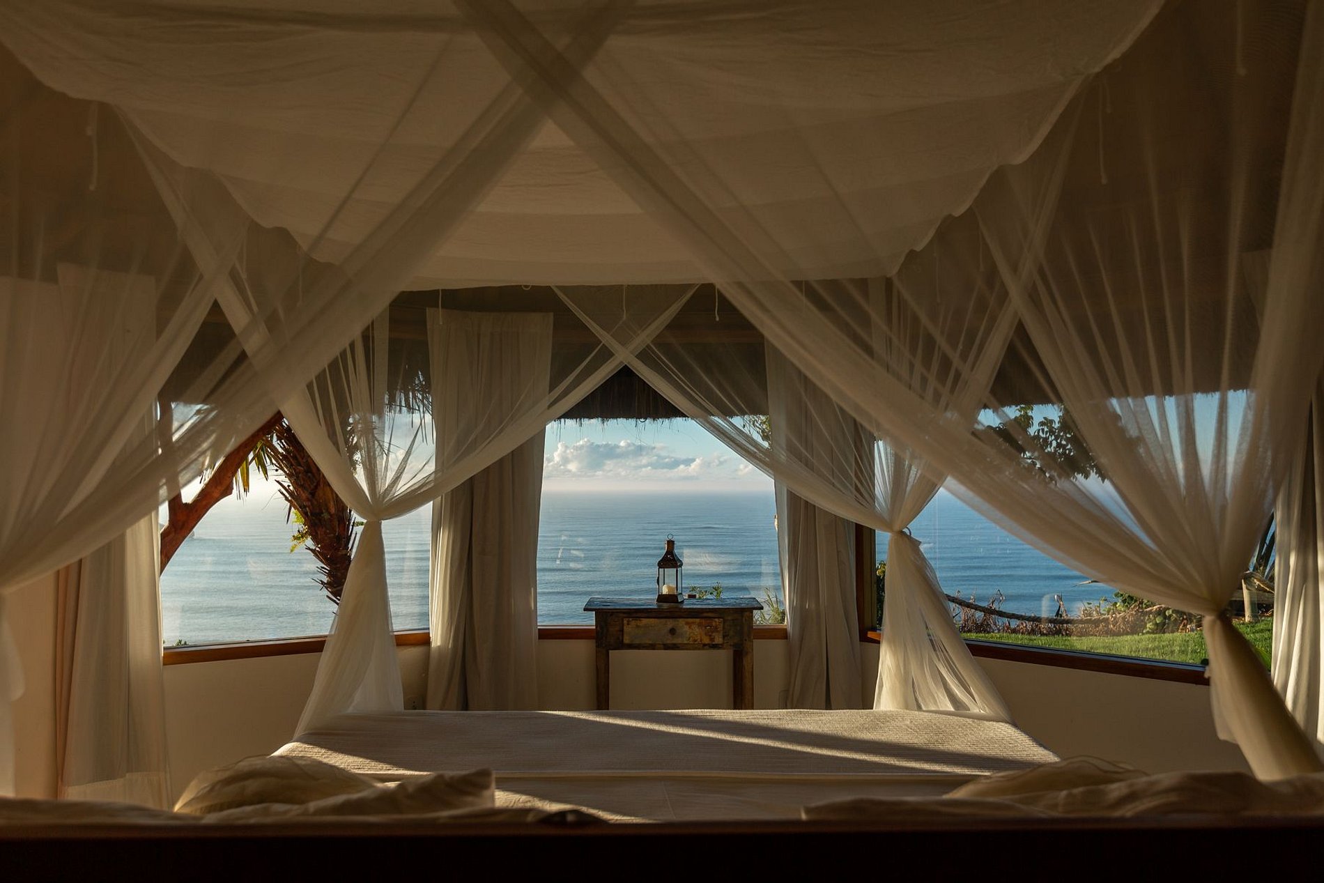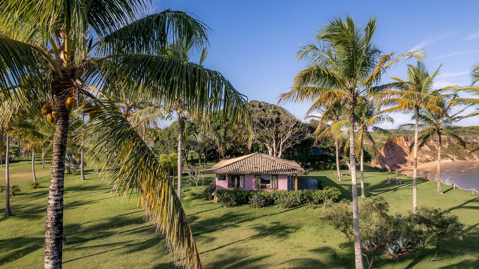 With just four bungalows and a rustic-chic house, the architecture is beyond elegant, in the midst of a garden of coconut trees and a breathtaking view of the sea, overlooking Ponta de Juacema and Corumbau.