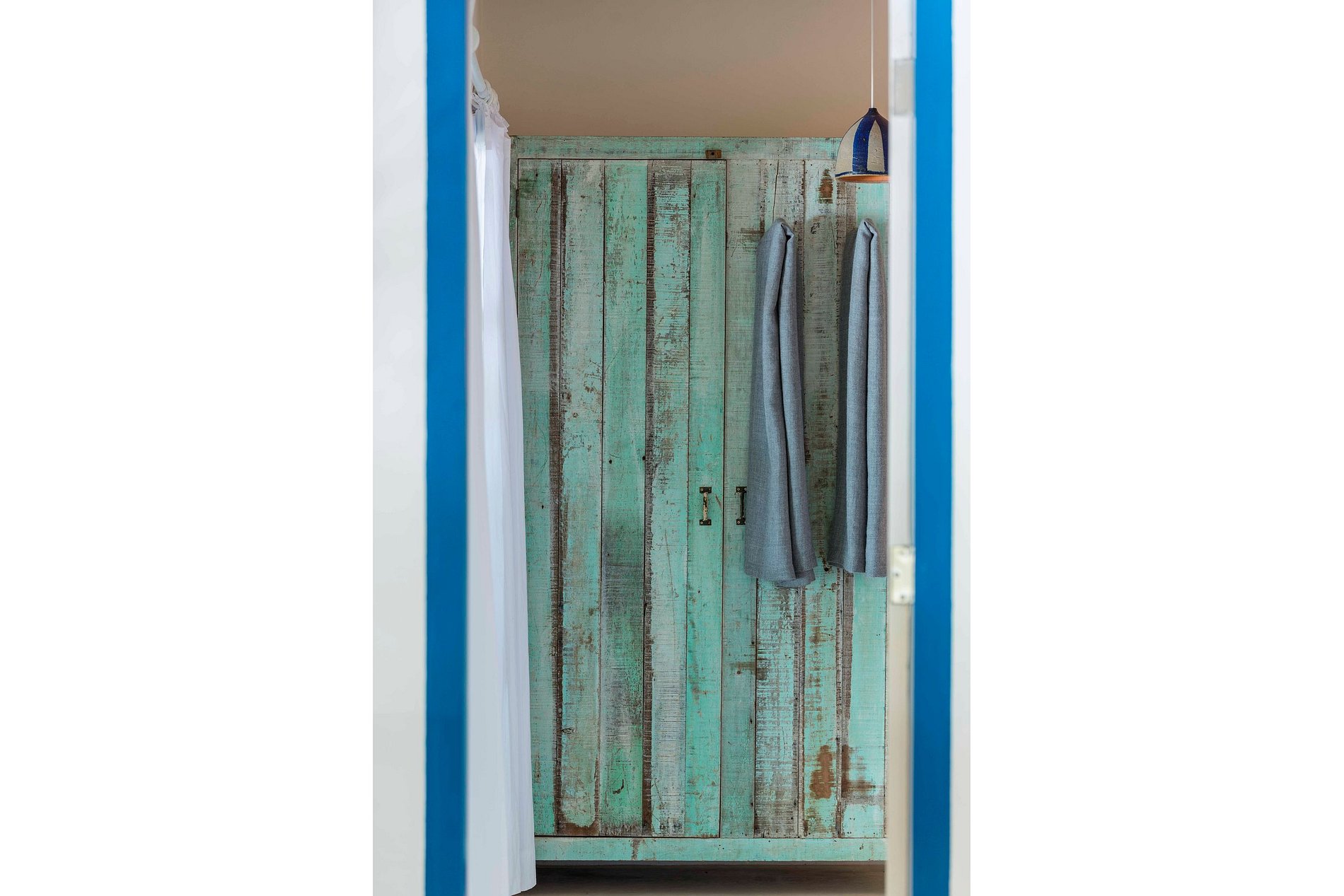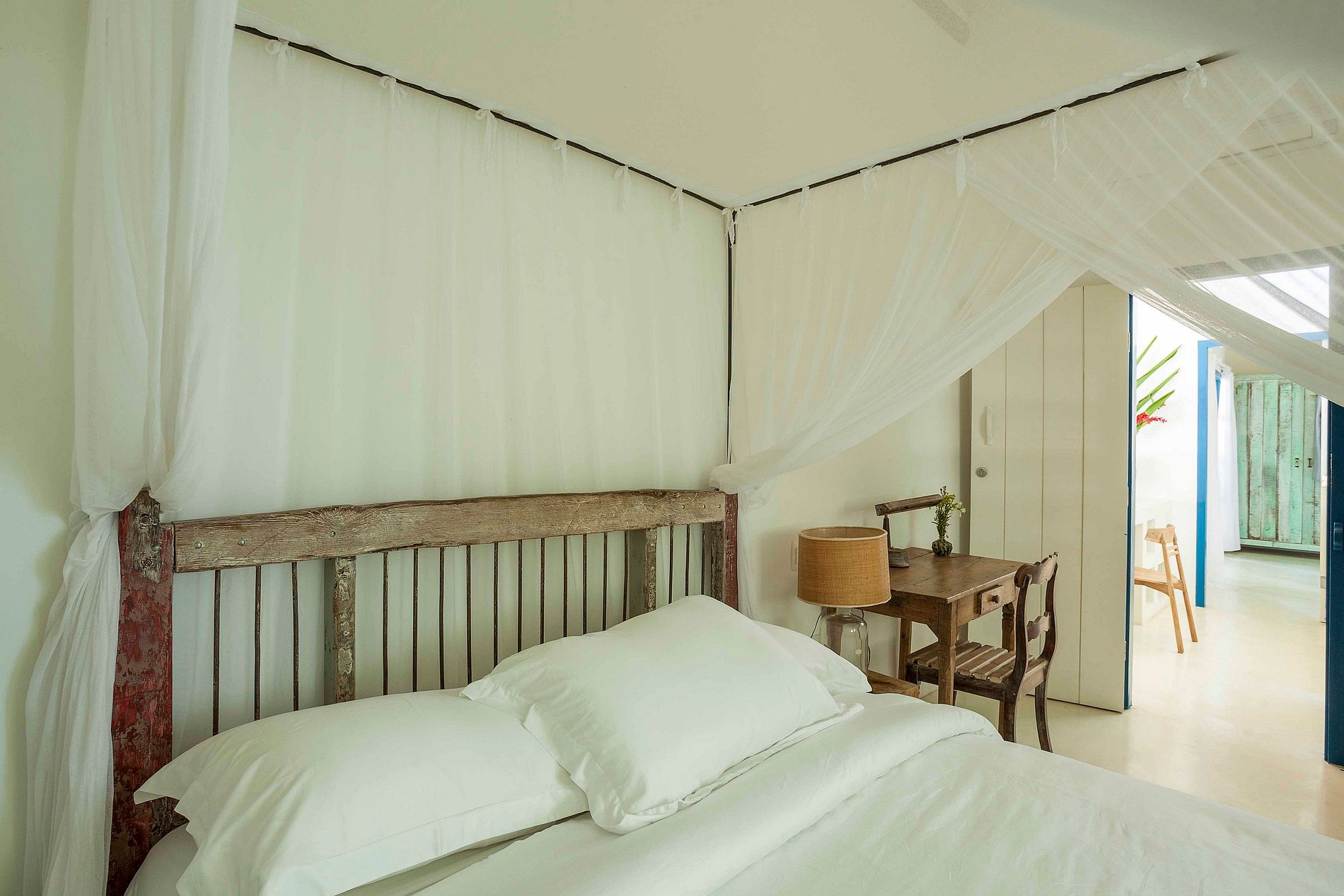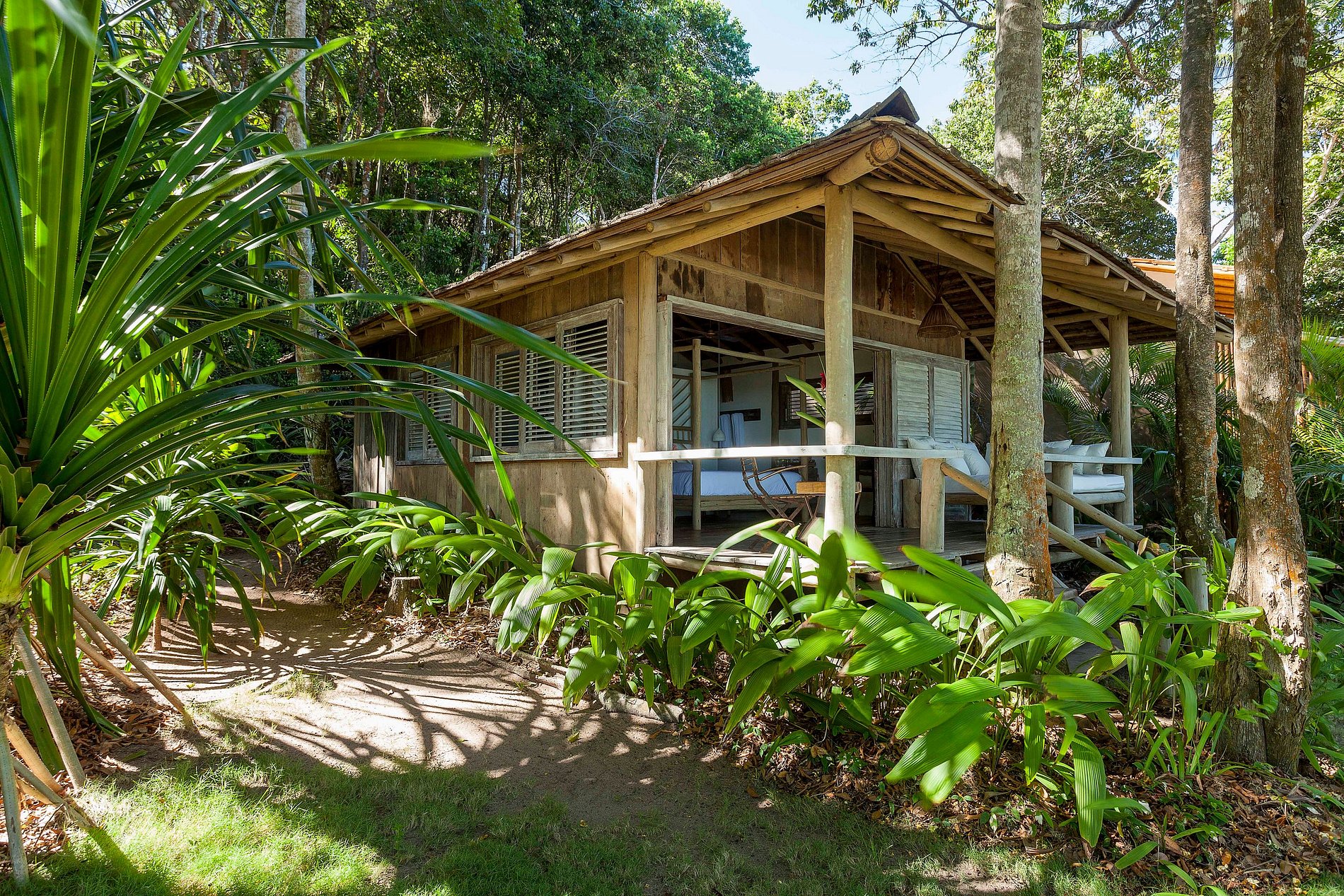 An idyllic retreat of four suites surrounded by tropical flowers and wild vegetation at the foot of cliffs on which his 100-hectare farm sits. A few steps from the sea, the impressive oil blue house seems to be a reflection of the waters, rising on a rustic base of natural wood with a beautiful balcony at the entrance and roof crossed by a giant almond tree.