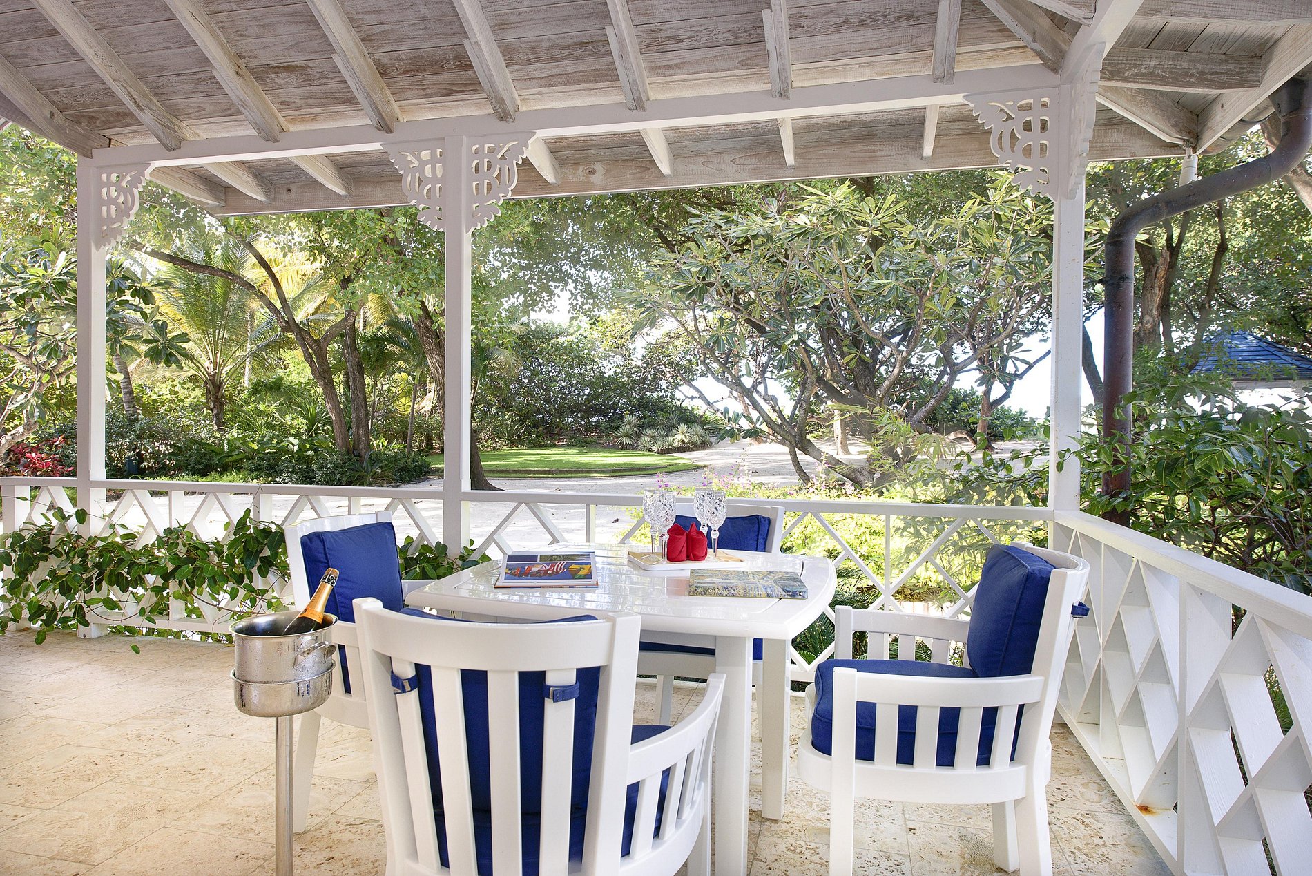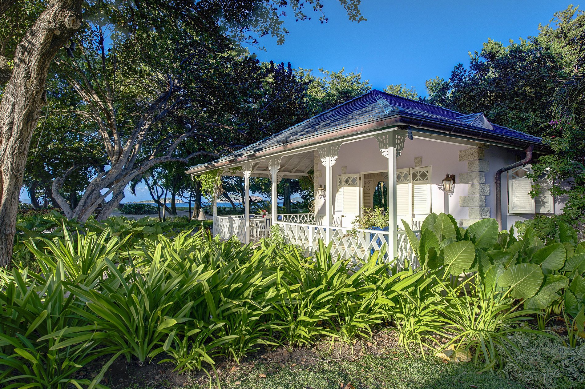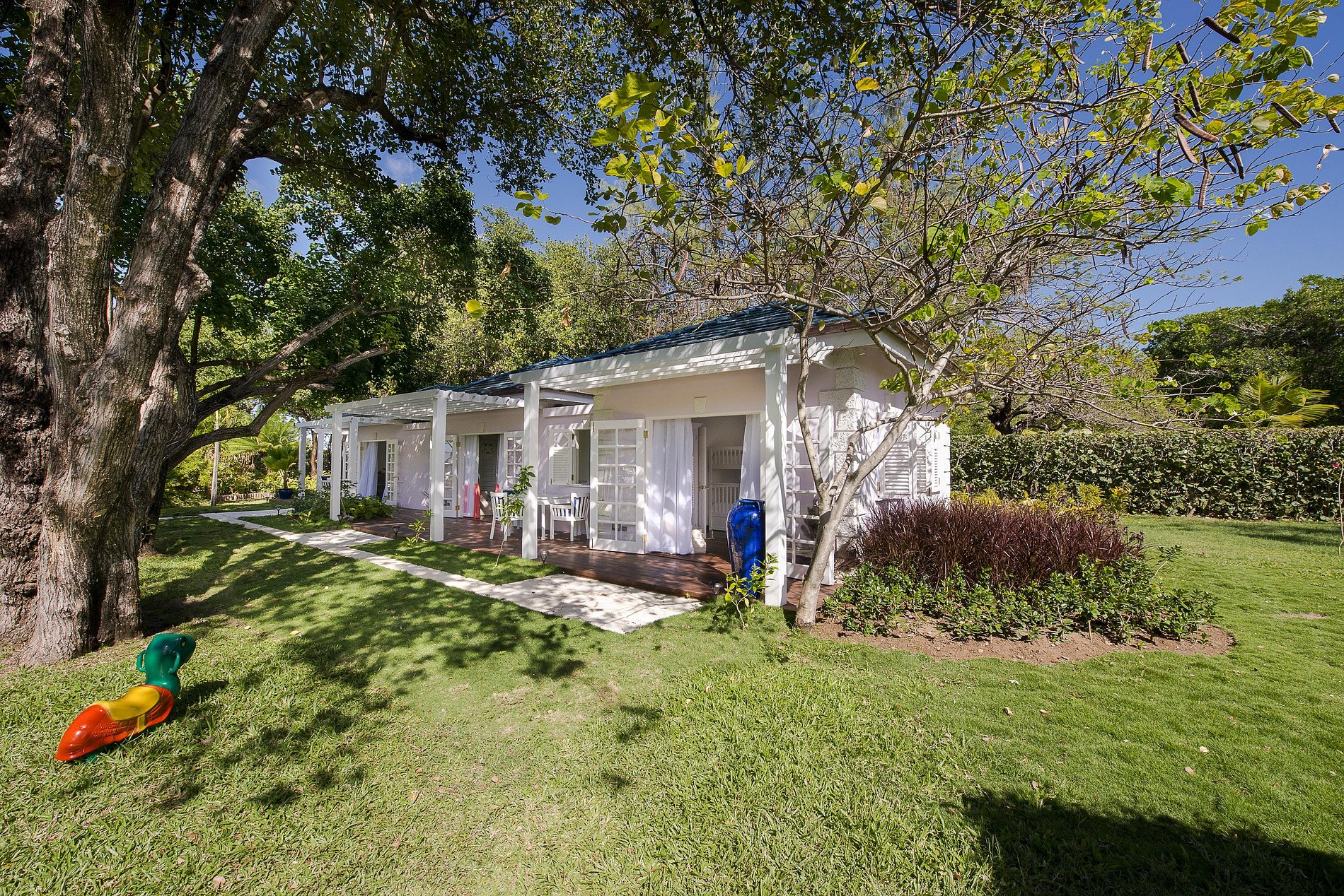 Extensive landscaped gardening has created one of the finest gardens on the island with beautiful white cedar trees and sea grapes.
