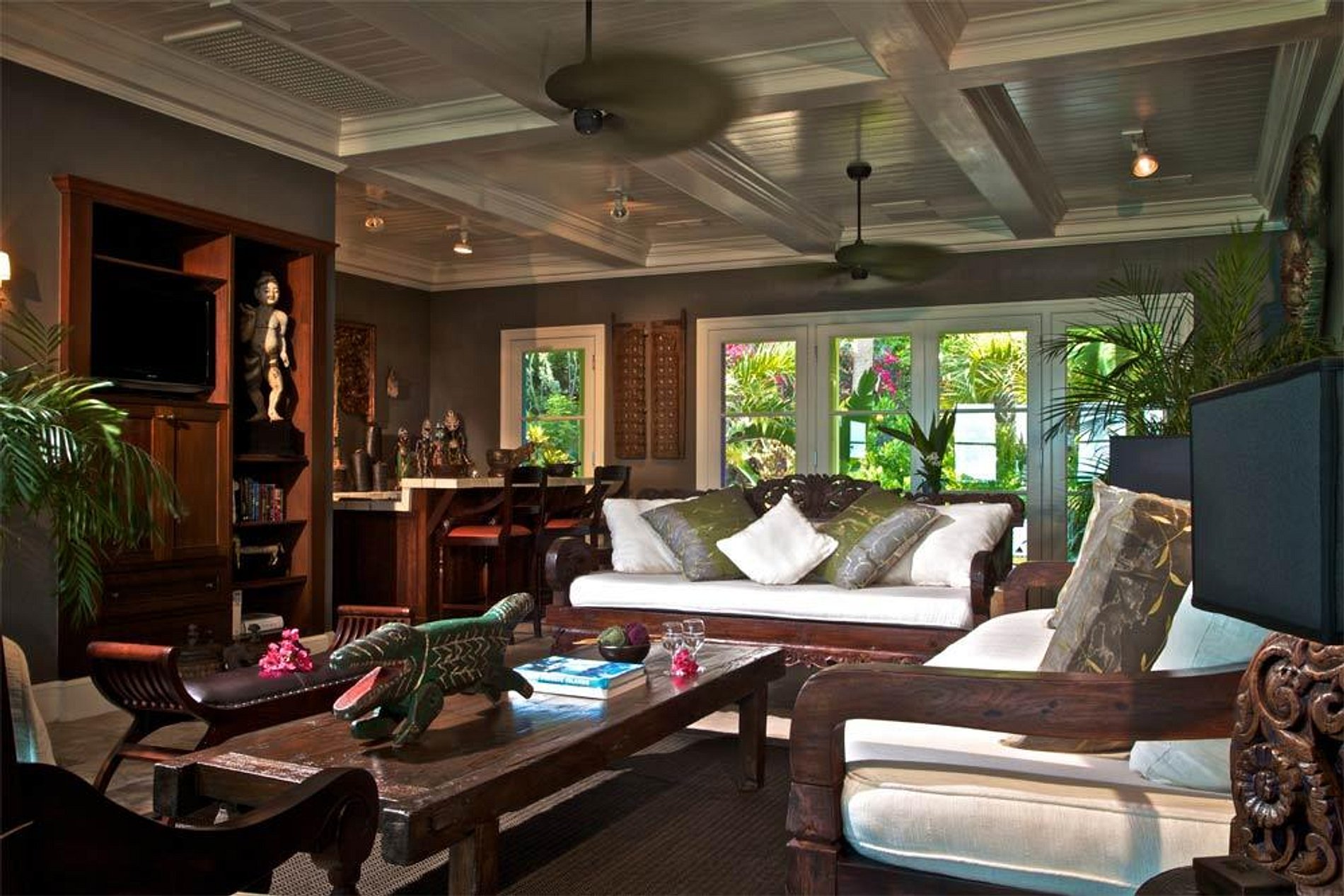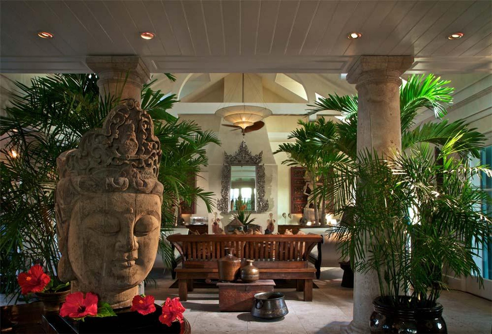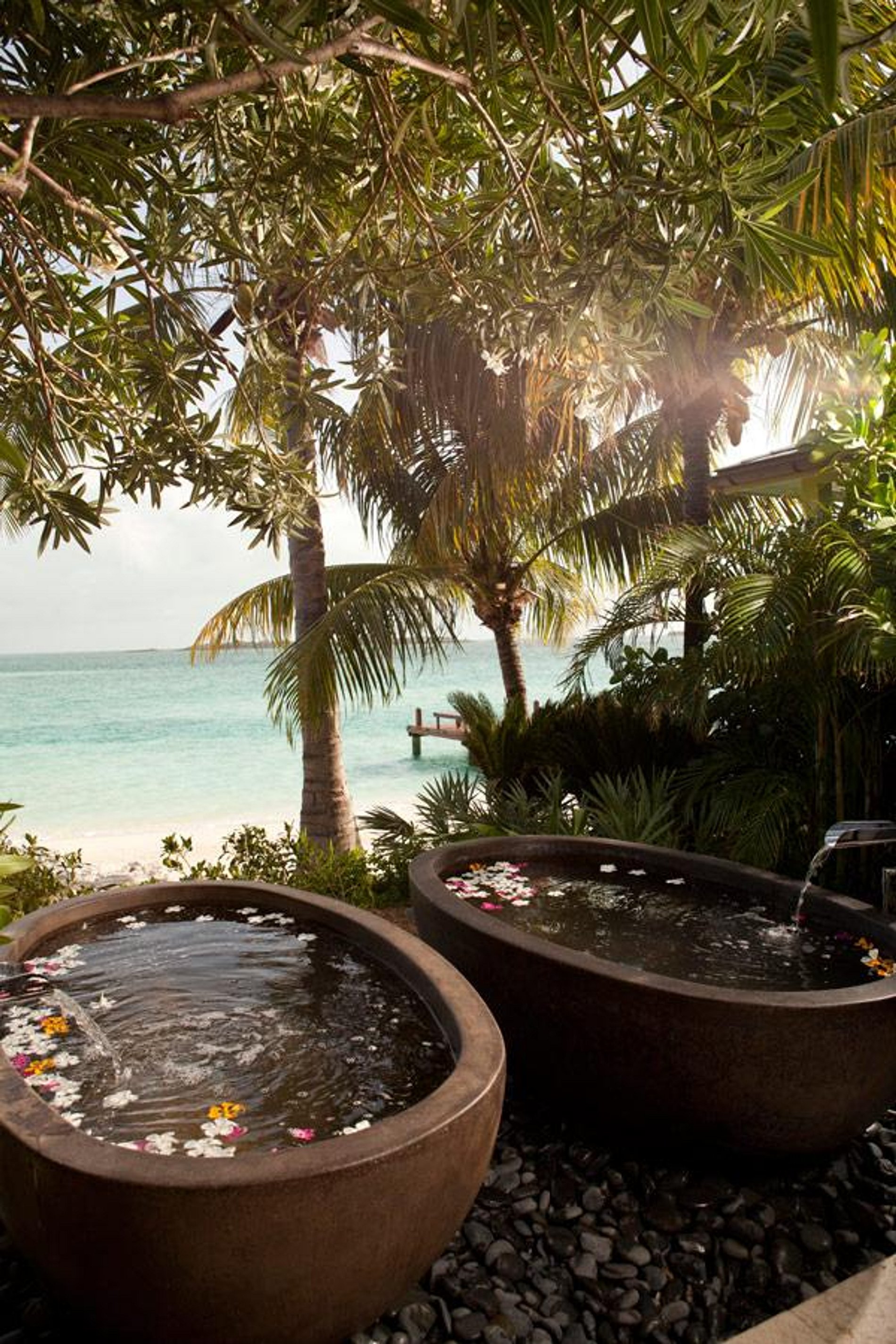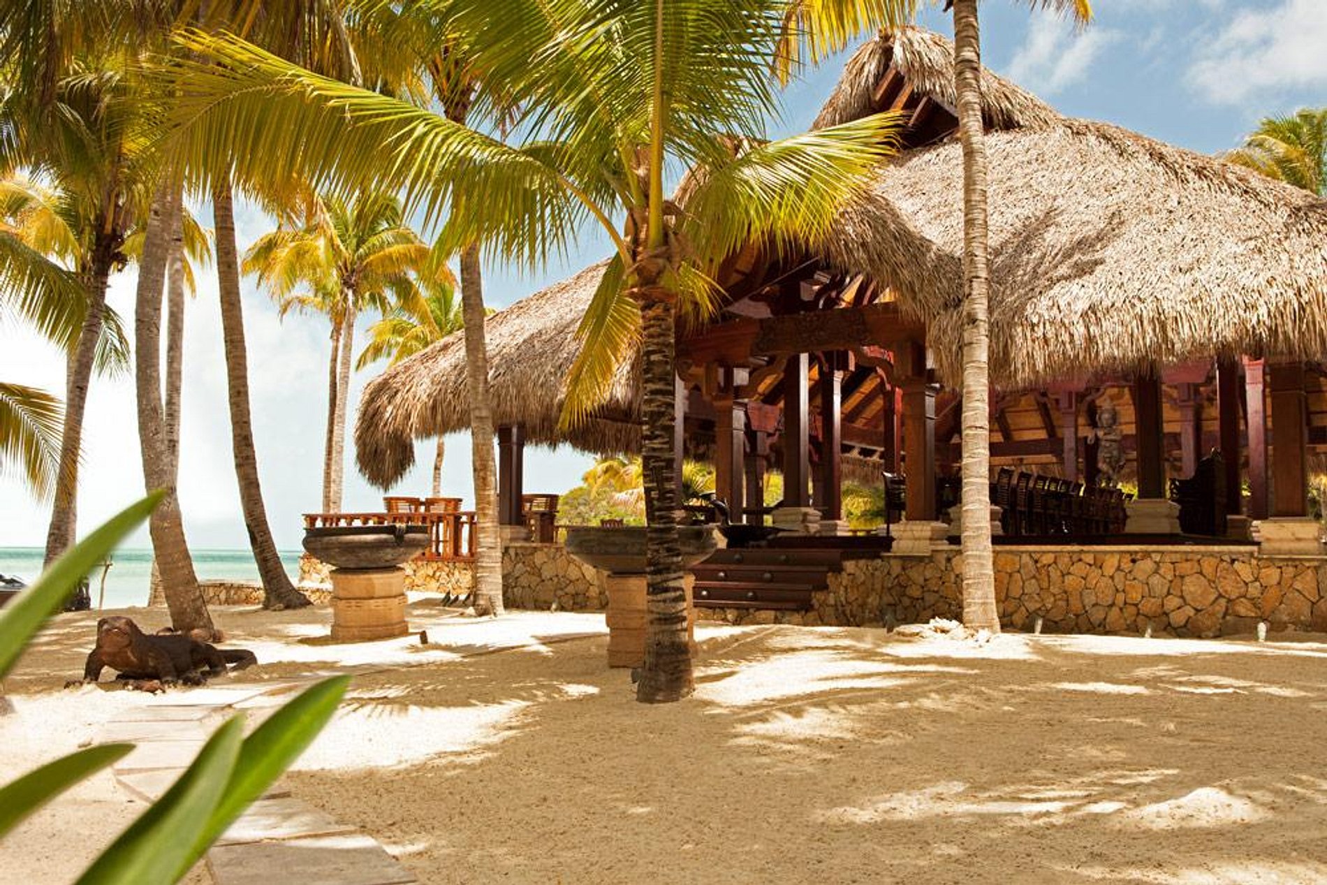 If you romantic island dream is better fulfilled by a thatched roof cottage, our Beach House has a living and bathroom without walls.