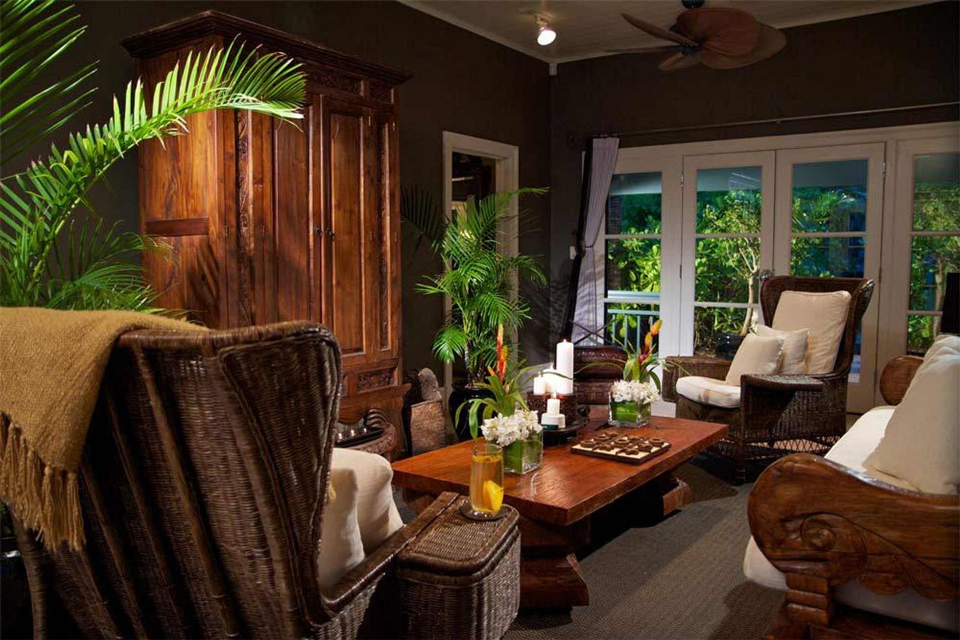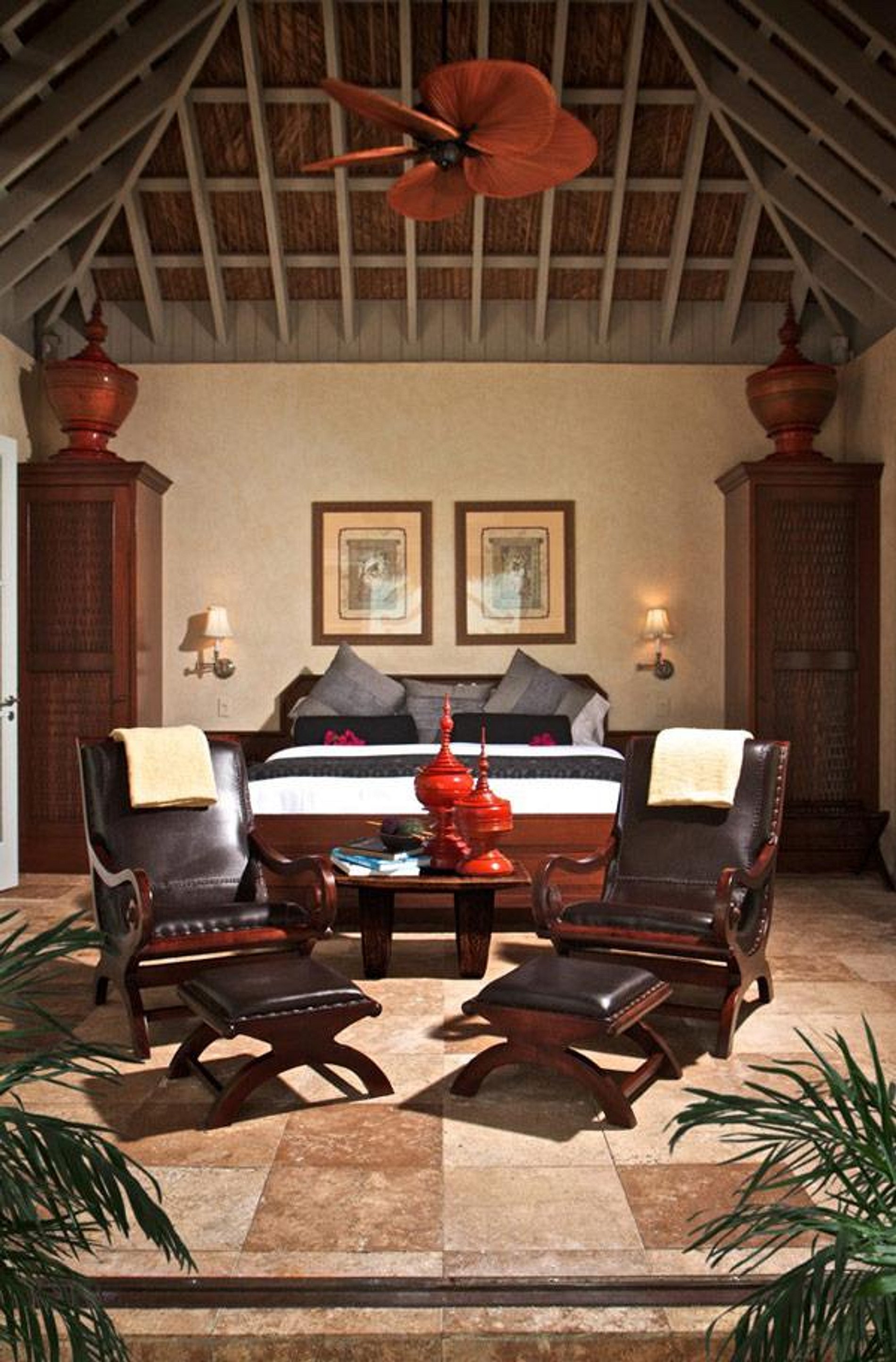 If you romantic island dream is better fulfilled by a thatched roof cottage, our Beach House has a living and bathroom without walls.