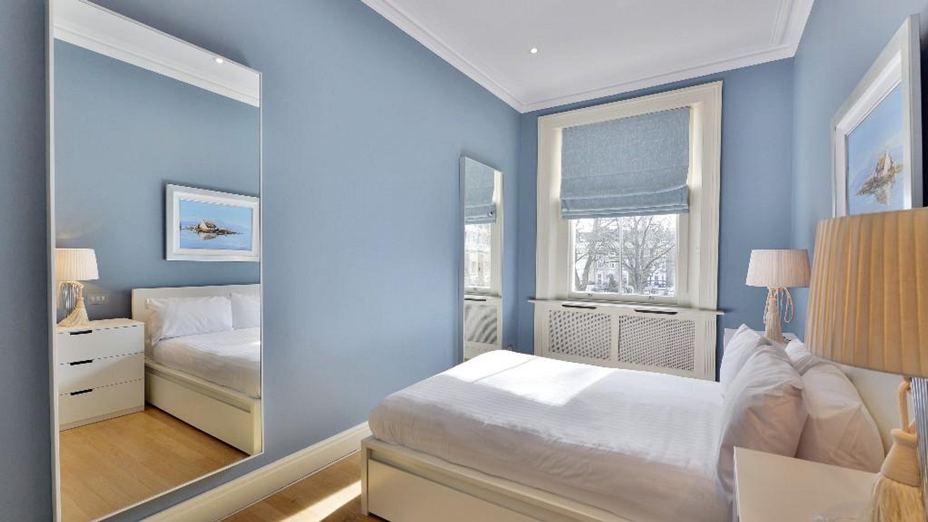 Walk into a spacious hall, with two bedrooms leading off it, one on either side of the building. The master bedroom with it's comfortable double-bed overlooks Onslow Gardens, whilst the cozy second bedroom - with small double and flatscreen TV - looks out over the rear of the Home. Both offer a quiet and peaceful place to rest your head every night. and the smart façades of Victorian houses which make the area so architecturally spectacular.