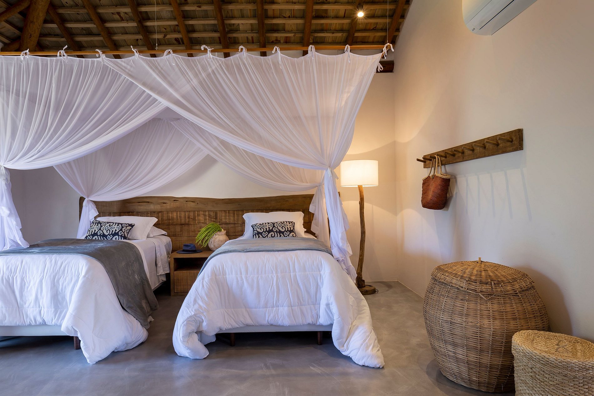 Todas as suítes são idênticas, arejadas e amplas com 54m2 cada, oferecendo assim um conforto igual a todos do grupo. Acomoda confortavelmente até 14 hóspedes.
