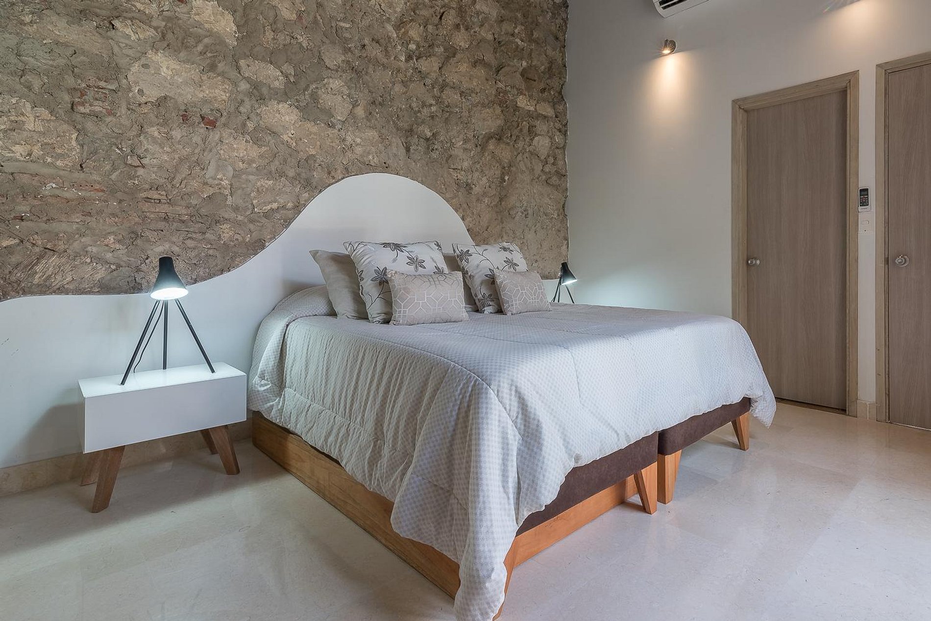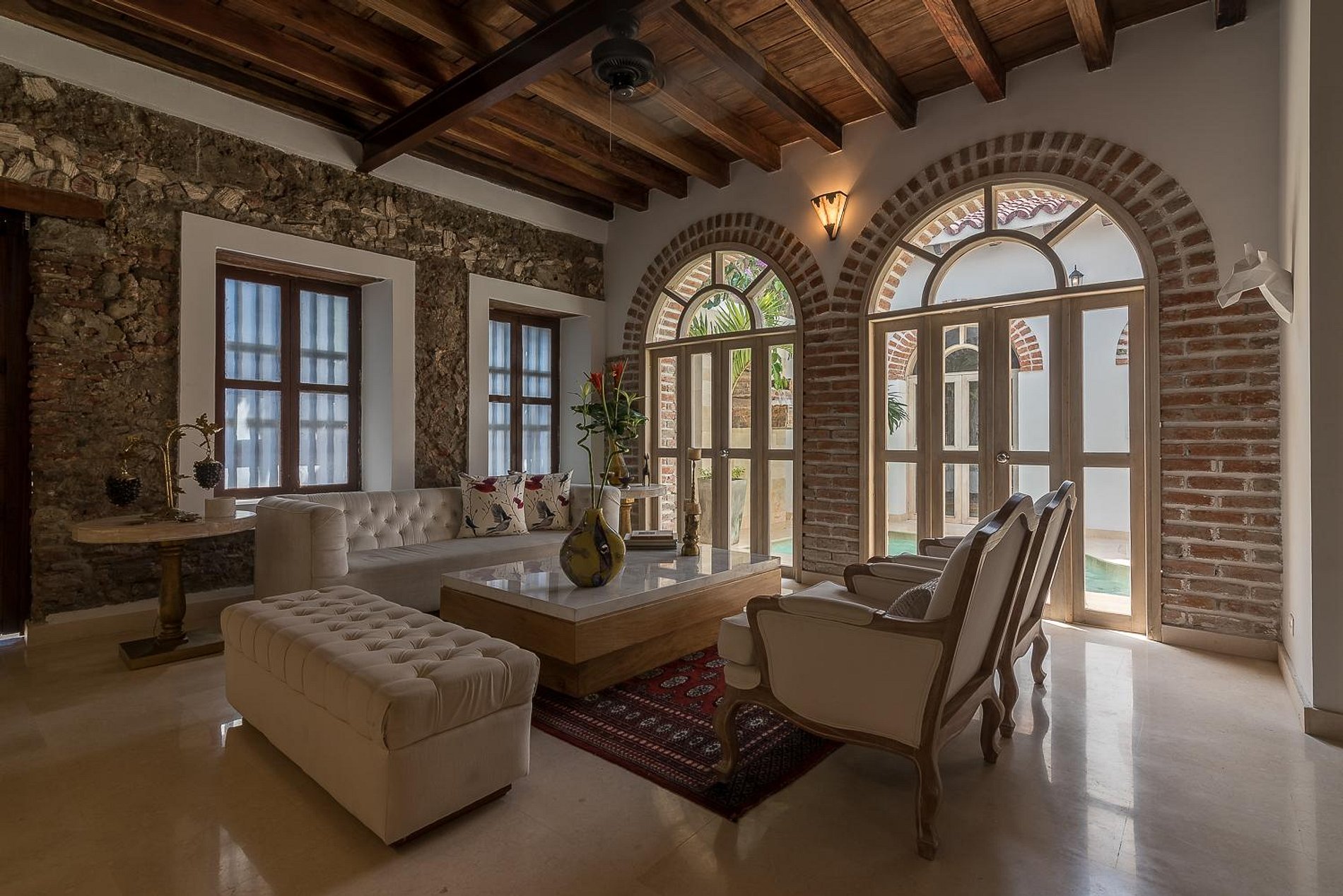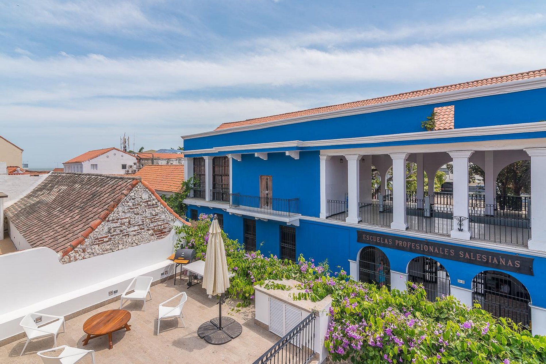 This radiant 3-bedroom colonial-style Home is perfectly located in Cartagena’s historic Old Town. The Home has an eclectic style, combining modern art with touches of traditional Colombian décor to achieve a unique and harmonious living space. White dominates the color palette while mixing blues to highlight the architecture, drawing inspiration from the oceanside views that characterize the area.