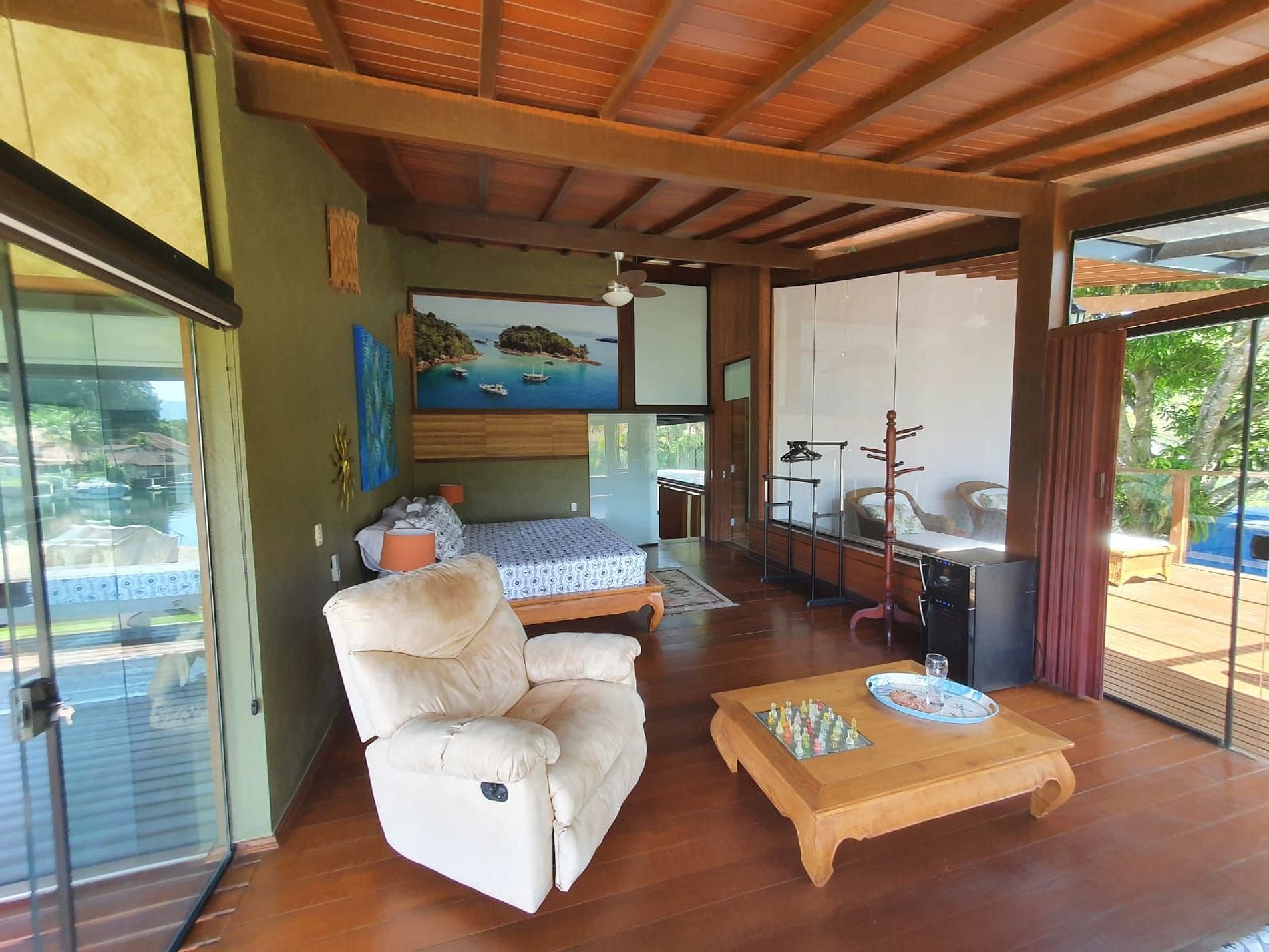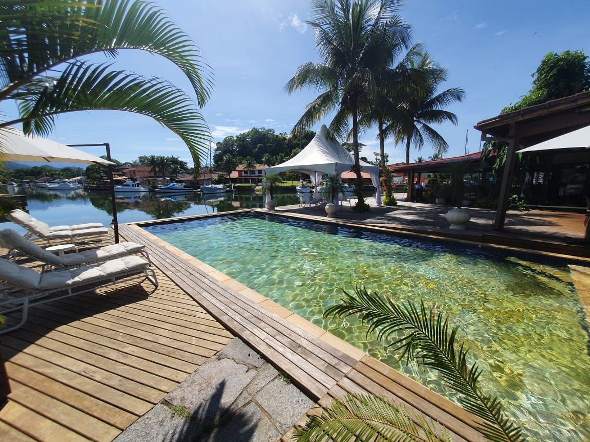 Located in Angra dos Reis, Rio de Janeiro, this condominium villa surrounded by vegetation, with a beautiful garden and a large outdoor area, offers infrastructure to comfortably accommodate up to 13 people. With a total area of 4,142.34 m², deck with floating for vessels up to 125 feet, outdoor area with capacity for helicopter landing and exclusive power point for vessels.